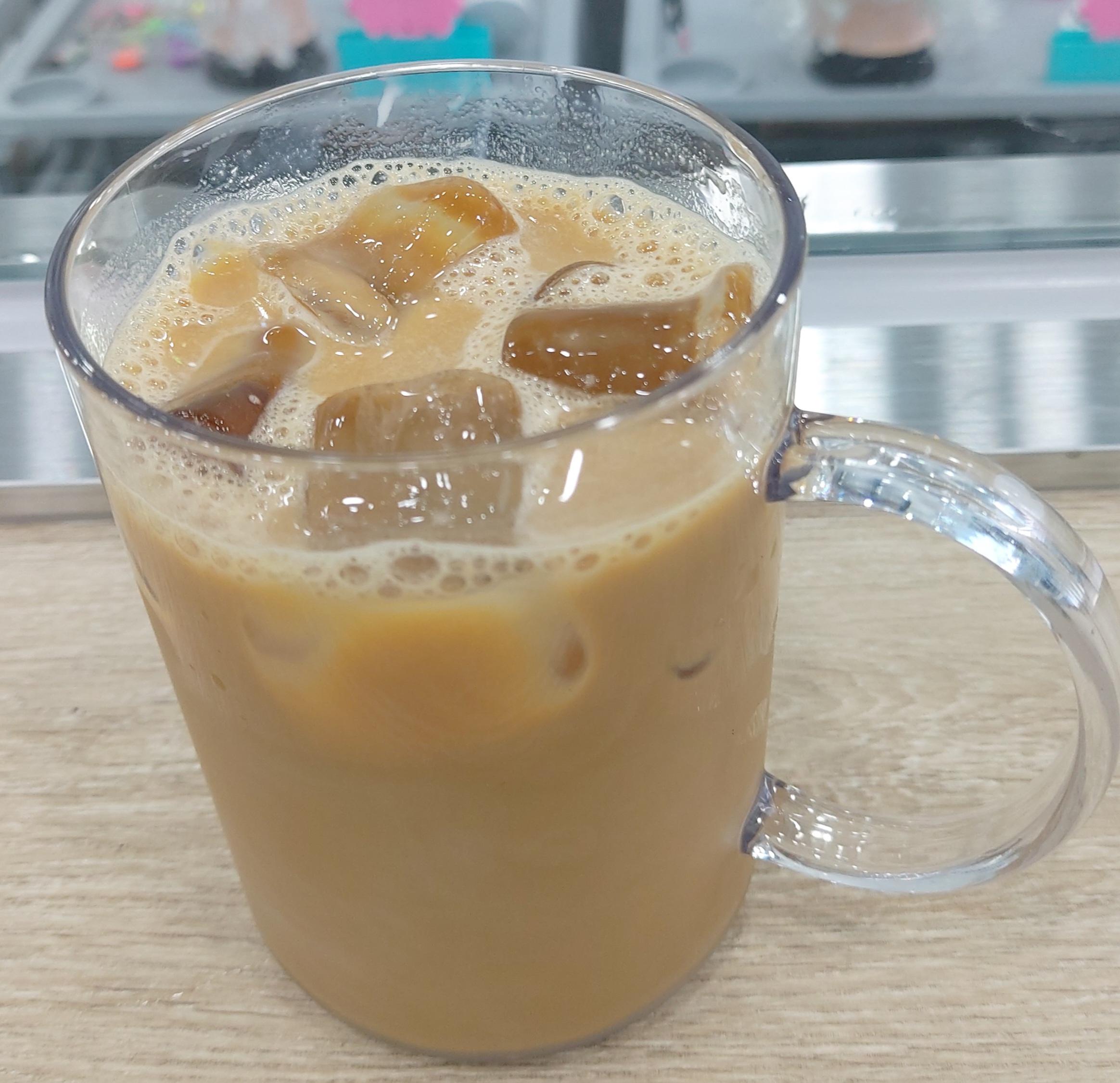 시원하게 한 잔 들이키며 아이가 참여하는 체험을 유리창 너머로 지켜봅니다.