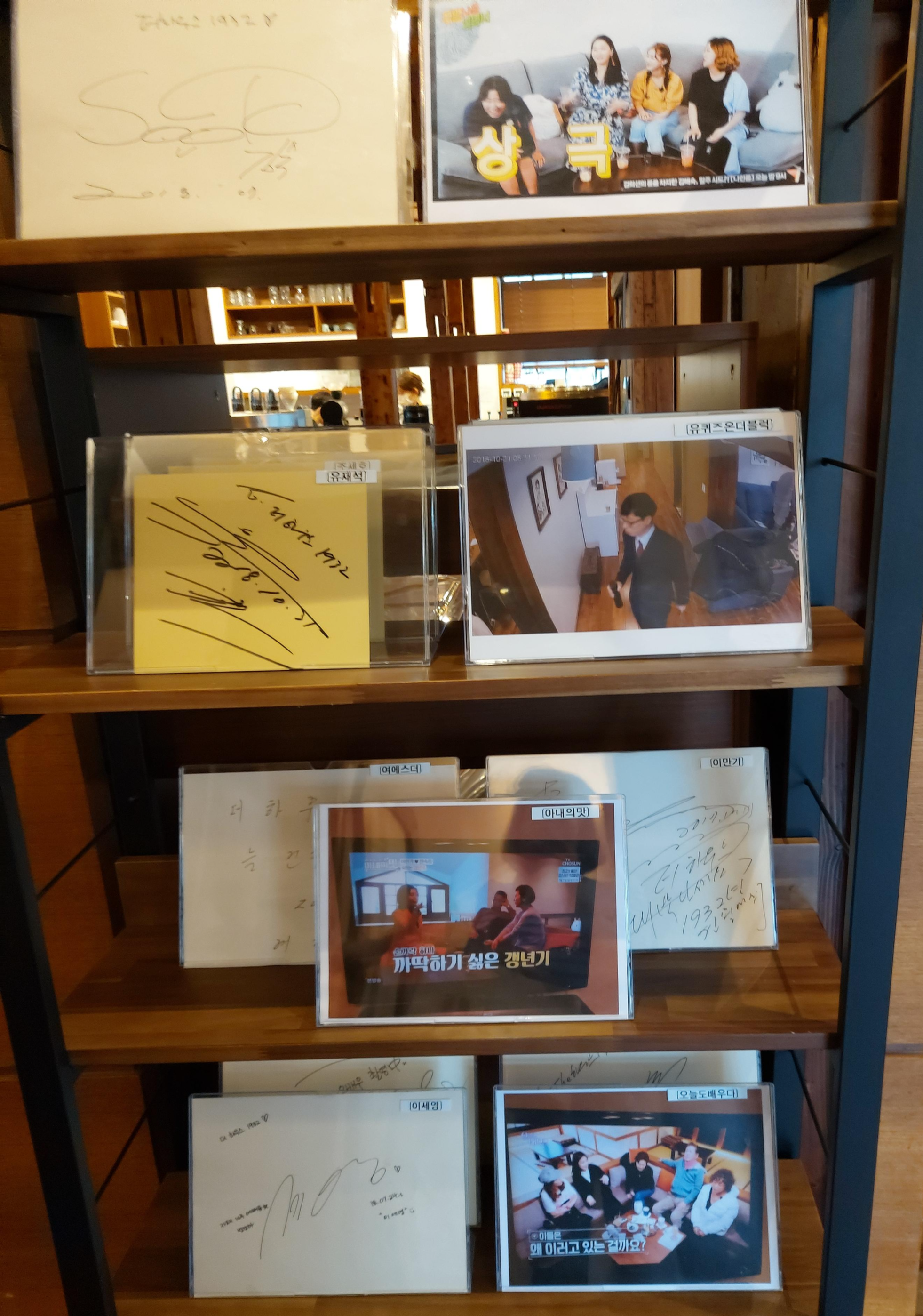 유퀴즈부터 아내의맛 등에서 방문한 사진과 사인이 한 켠에 놓여져있네요.