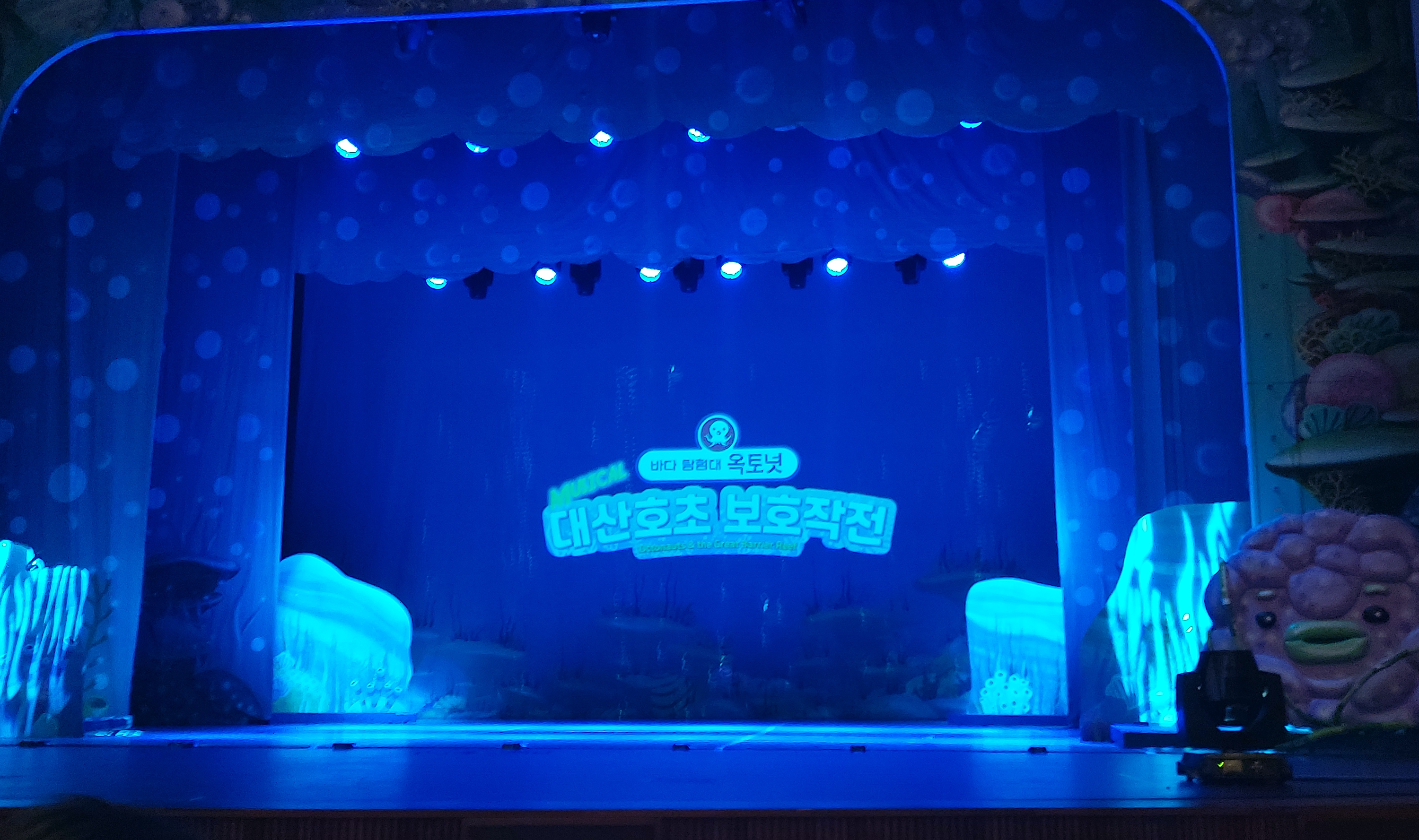 이번 공연은 바다탐험대 옥토넛이 대산호초가 잘 살 수 있는 환경을 조성하는 그런 내용입니다. ㅎㅎ