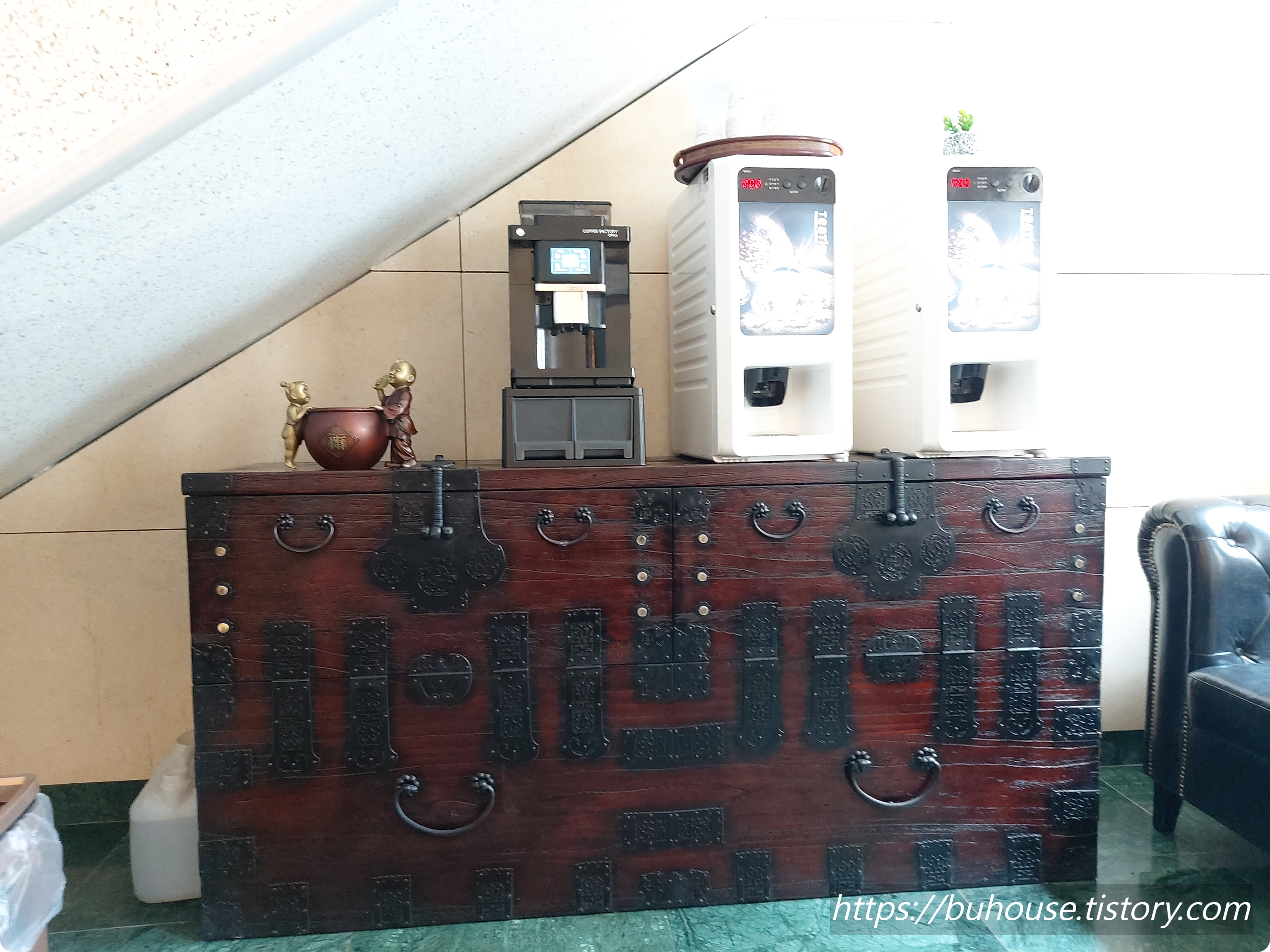 하지만 식당 입구에 아주 편안하게 에어컨 바람 쐐면서 대기할 수 있는 쾌적한 공간이 잘 마련되어 있습니다.