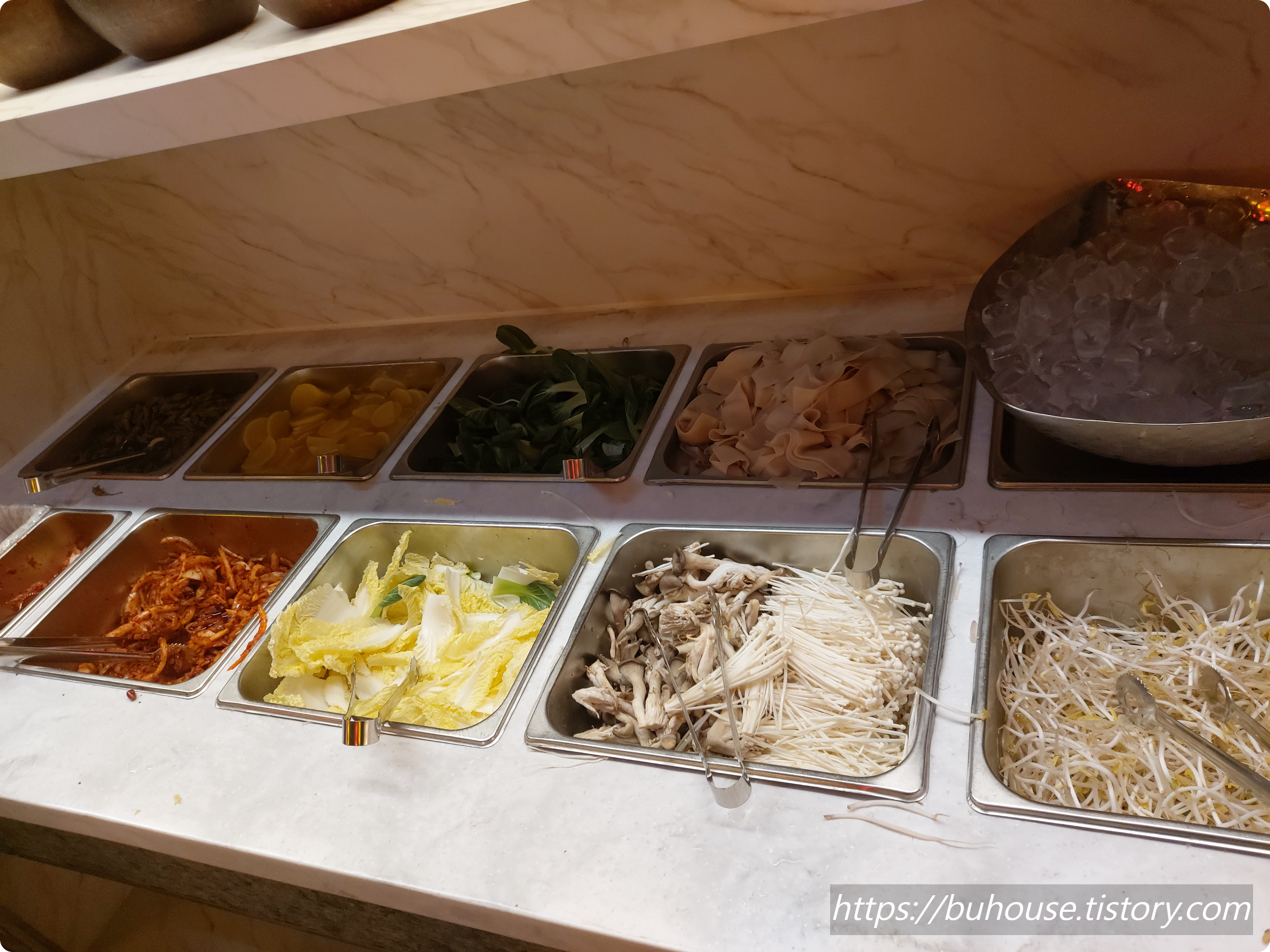 각종 야채들이 잘 정돈이 되어있네요. 전 훠궈먹을때 배추를 제일 좋아합니다.