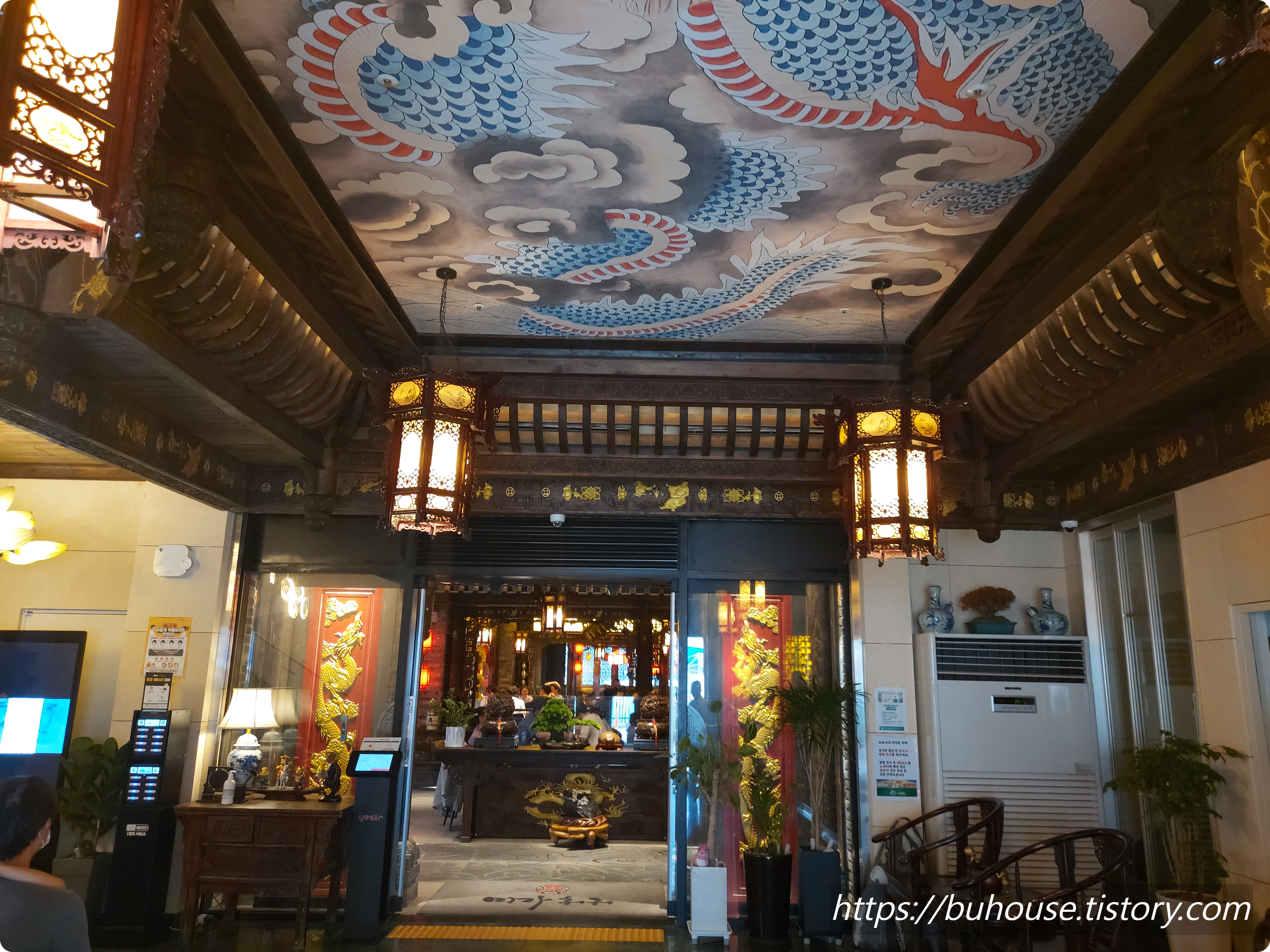 중국풍의 엄청난 인테리어와 규모에 놀랍니다.