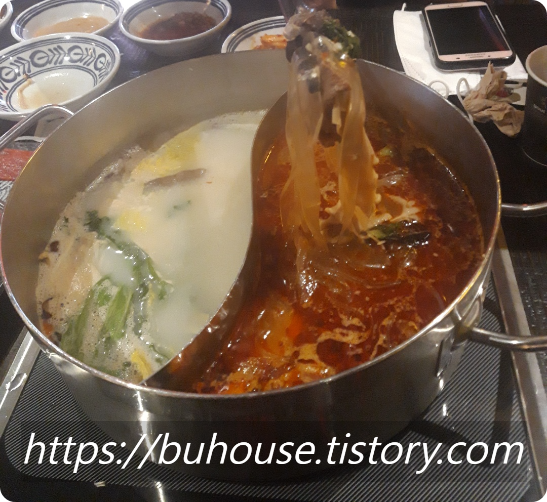 사실 저는 홍탕만 먹는데, 남편을 배려하려고 백탕도 같이 시켰어요.