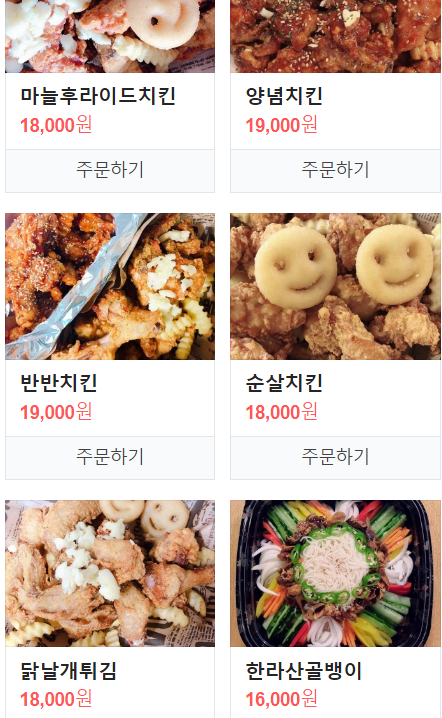 한라산골뱅이 (16000원)과 새우볶음밥(6000원)을 주문합니다.