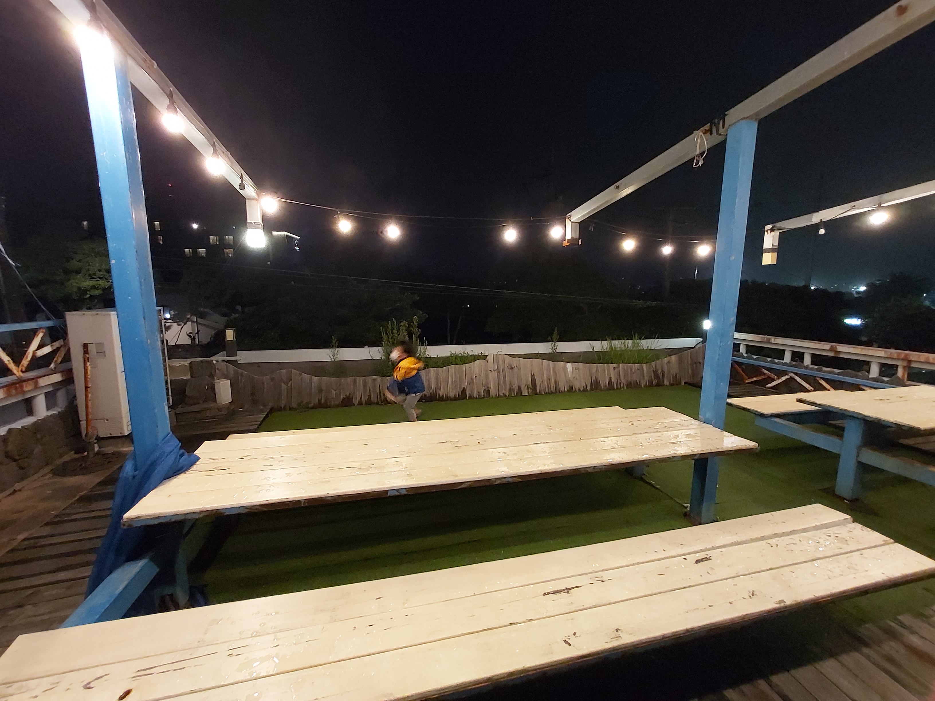 다 먹고 소화도 시킬 겸 옥상으로 올라왔더니 야외테이블도 있더라고요.