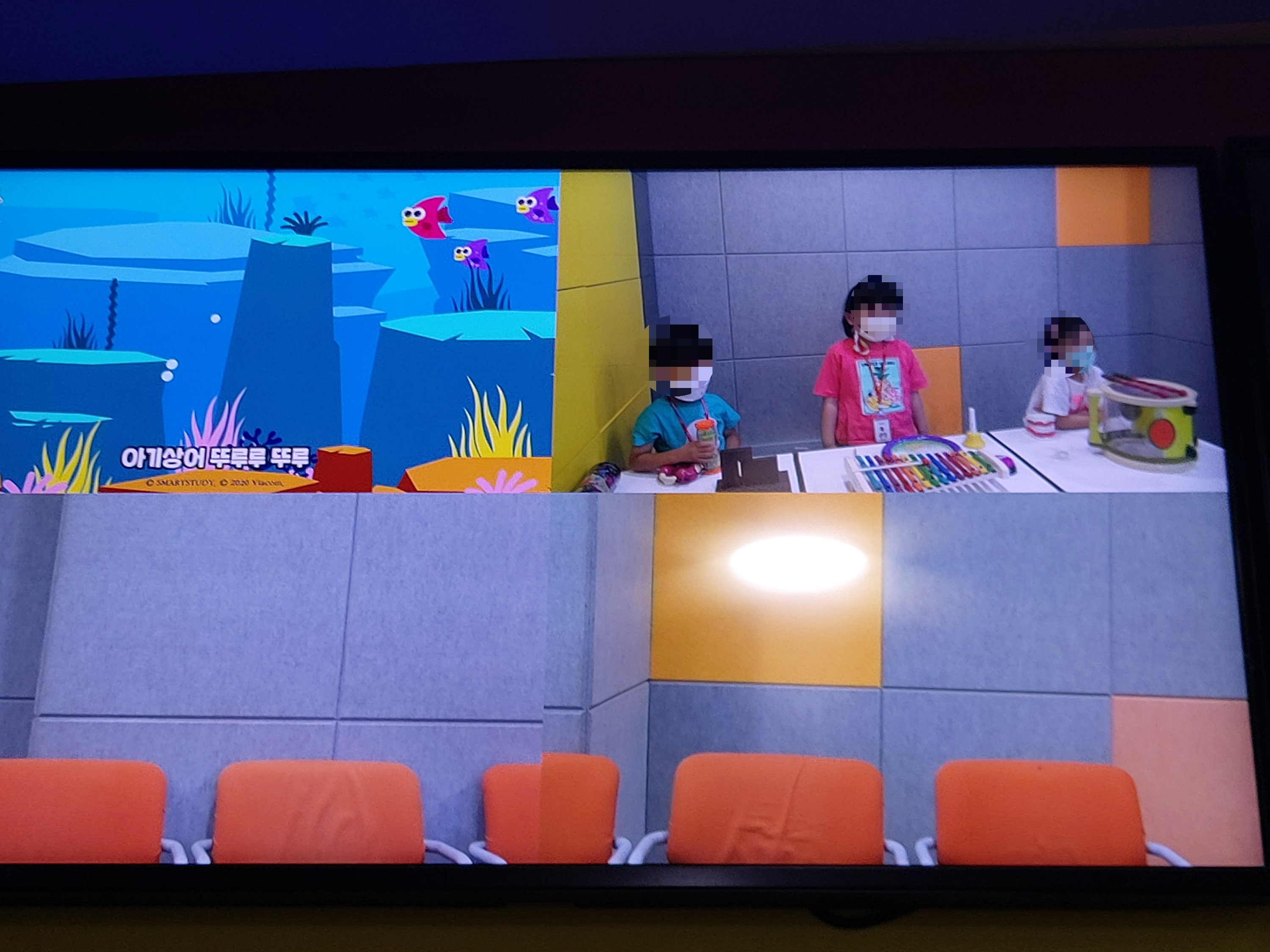 영상을 다운 받아보니 아이들 얼굴과 만화 화면이 동시에 보이면서 아이들이 얼마나 집중해서 자기 역할을 소화하고 있는지 보이네요.