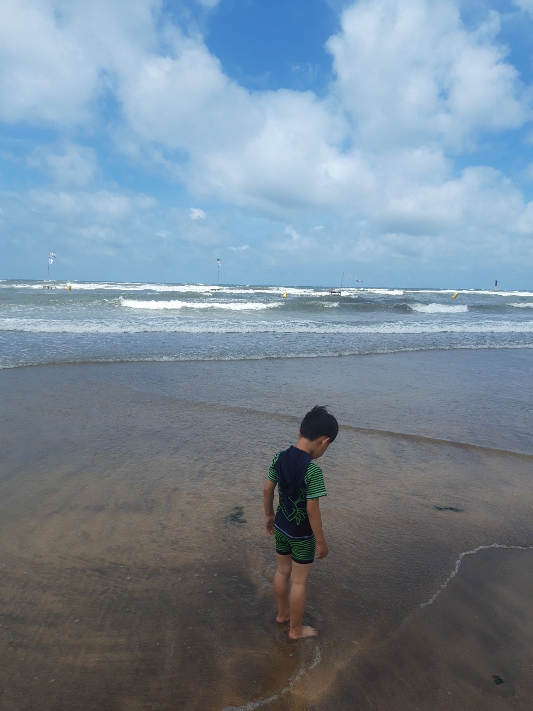 혼자서 노는데도 뭐가 그리 재밌는지 파도와 함께 아주 잘노네요. 엄마는 육퇴의 기분을 잠시 맛 봅니다.