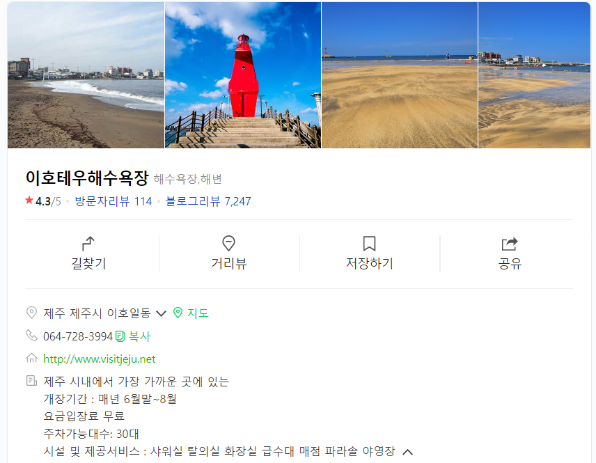 지금까지 제주 시내와 가깝고, 무료 해수 풀장도 운영하는 '이호테우해수욕장'이었습니다.