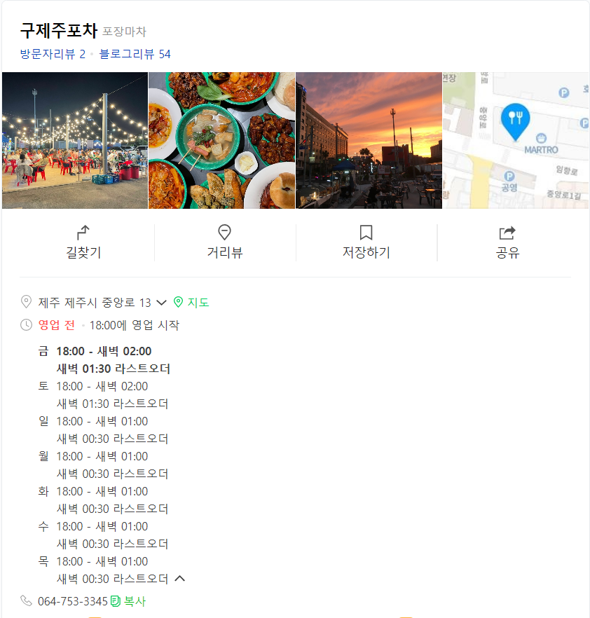 제가 묵었던 오션스위츠제주호텔과 너무 가까운 위치에 낭만 가득 포차 '구제주포차'가 있어서 소개해드립니다.