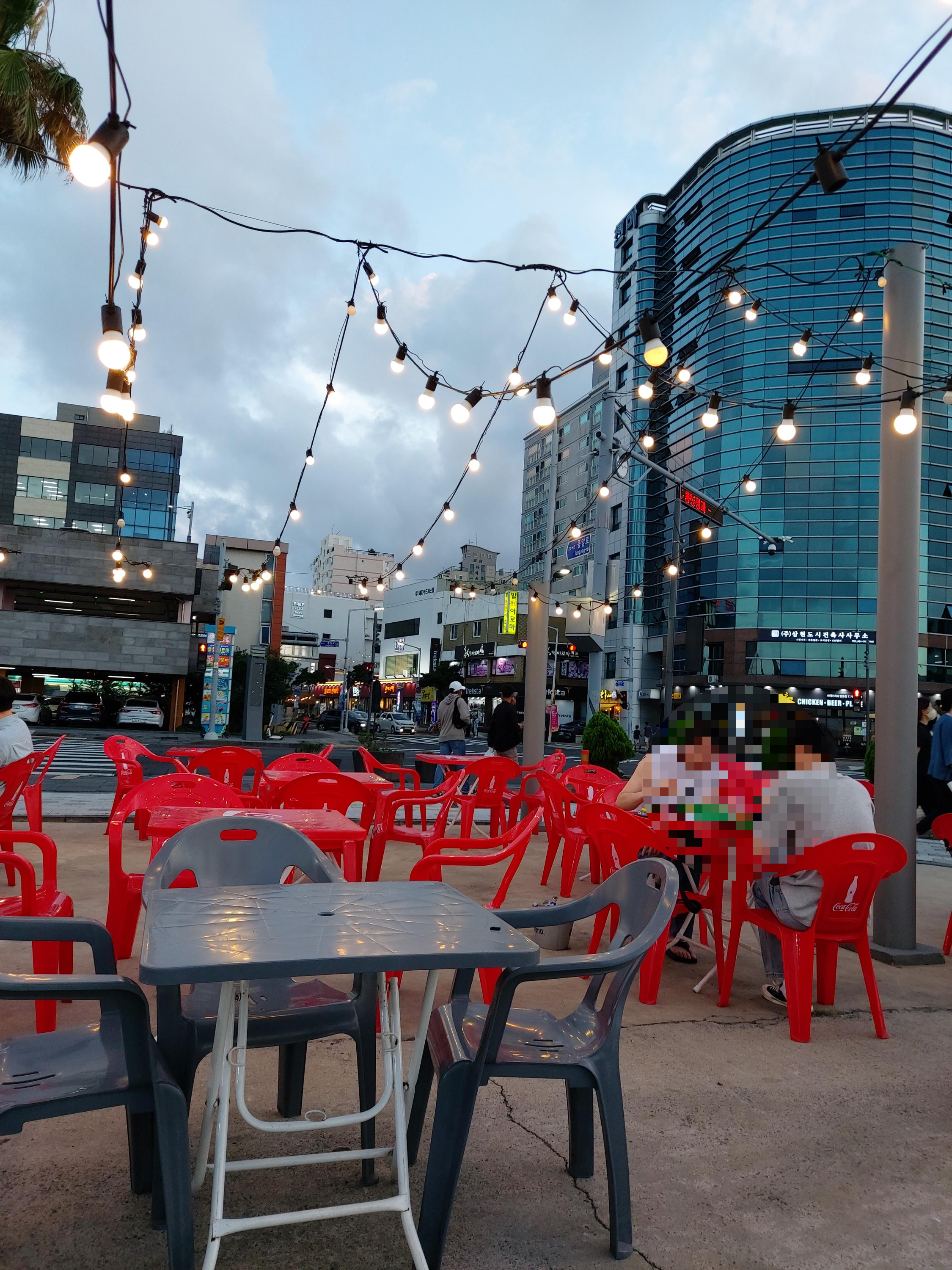 날이 어둑어둑해지고 조명이 들어오니, 테이블에 앉는 사람들이 순식간에 늘어났습니다. 금새 자리가 차더라고요.
