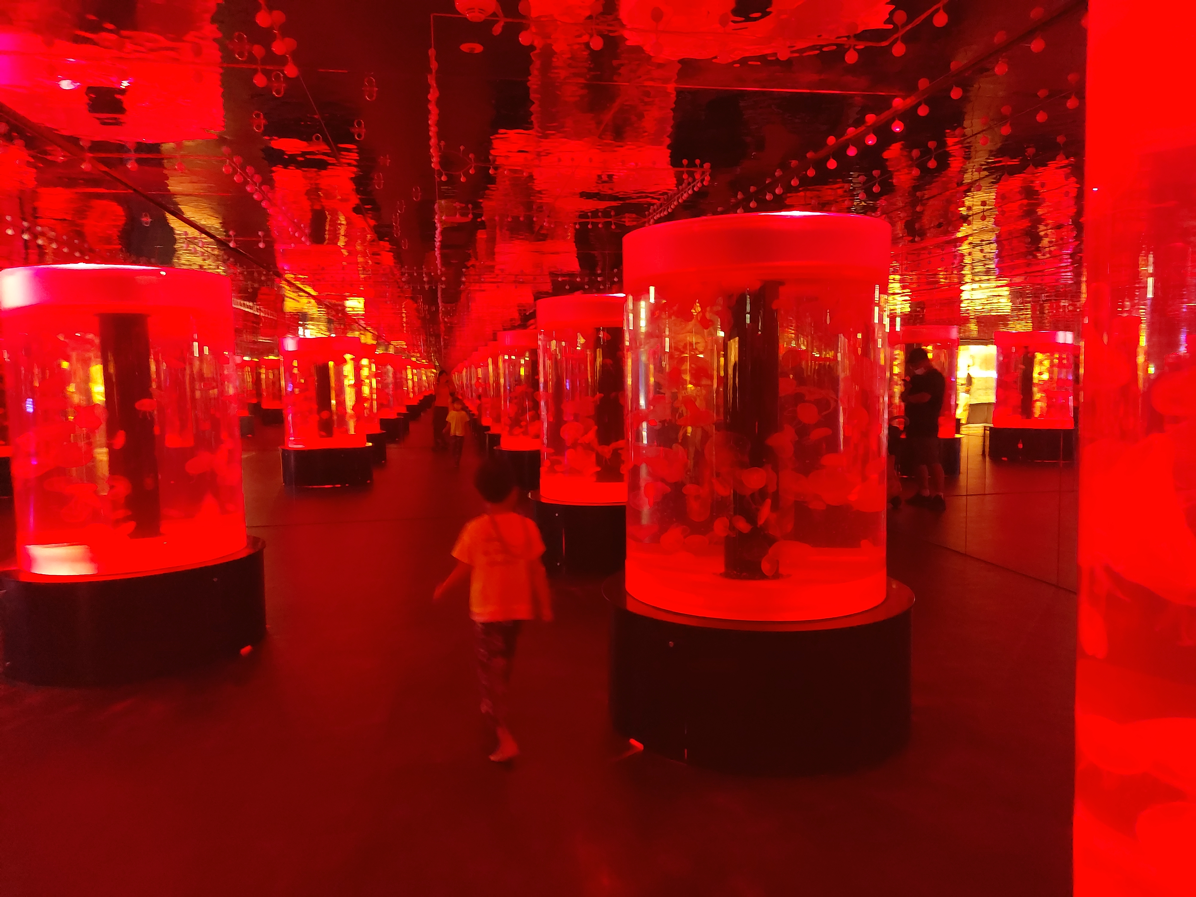 여러 조명으로 전환되는 해파리가 있는 공간입니다. 신비한 느낌이 드는 방입니다.