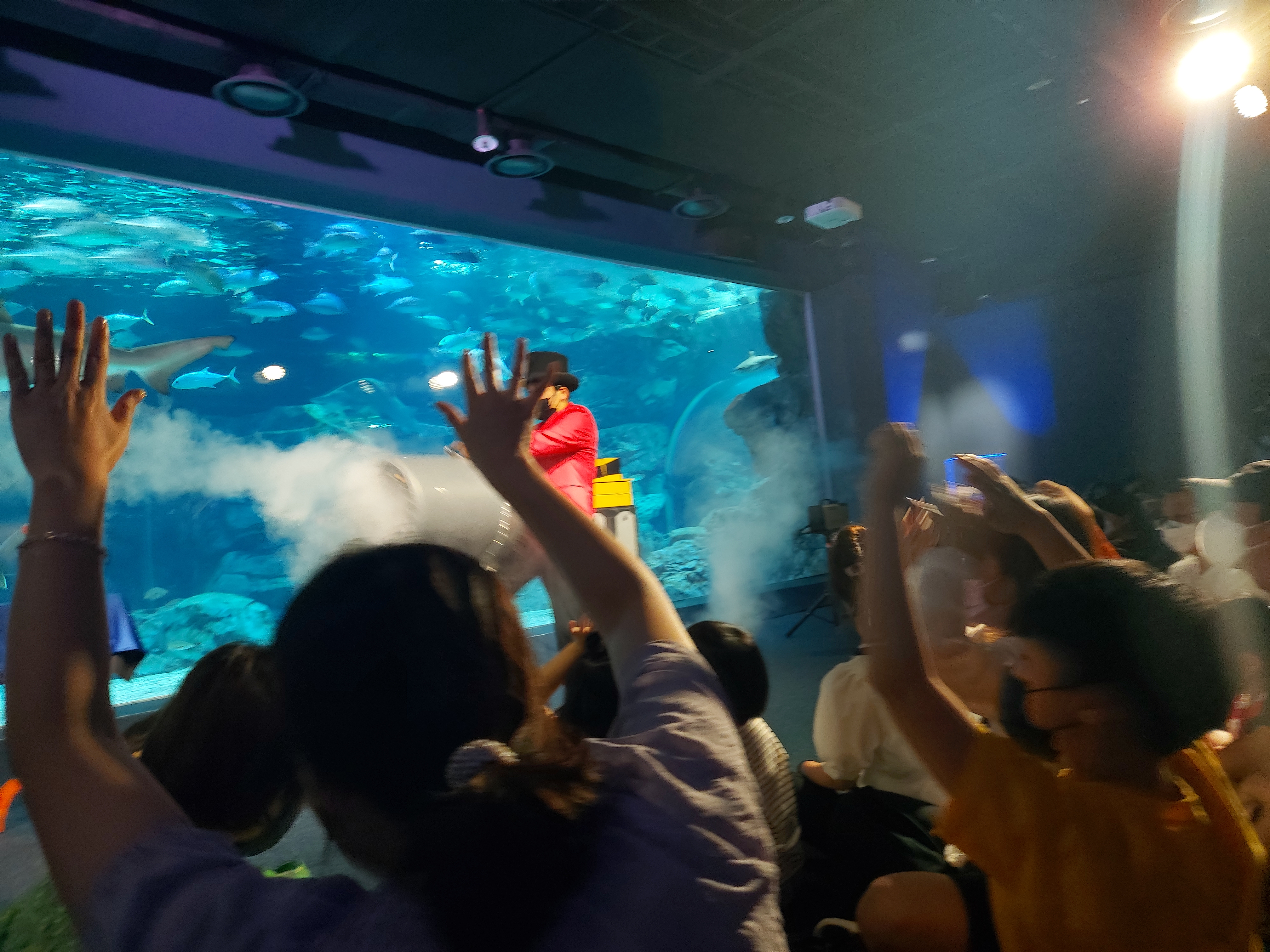 플레이그라운드에서 놀다가 아쿠아매직쇼가 시간되는 시간이라 이동을 하였습니다.