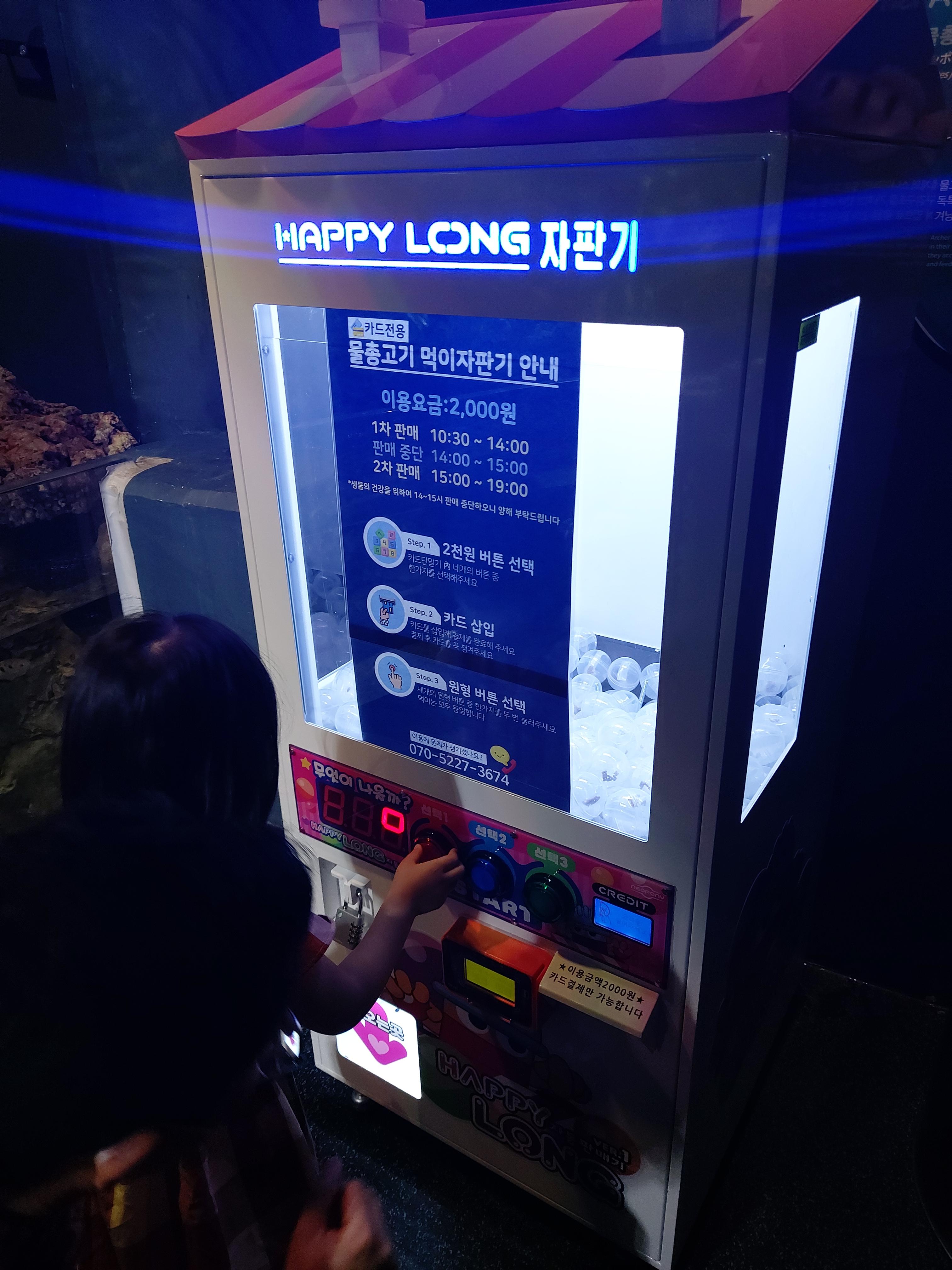 한 쪽에 먹이 자판기가 설치되어 있습니다. 카드를 투입하시고 2000원을 결제하면 먹이가 든 캡슐이 나옵니다.