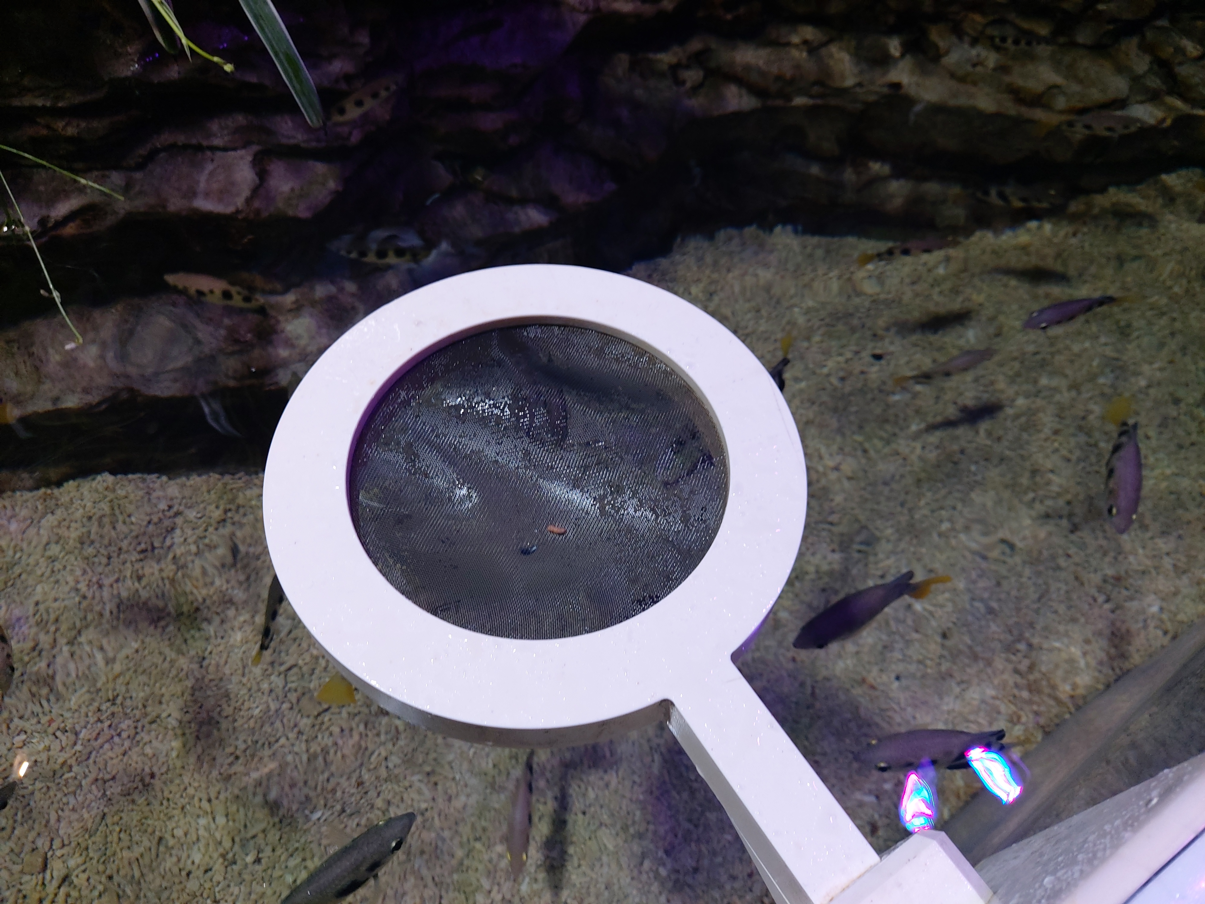 먹이를 망에 올려놓으면 물총고기가 물총을 찍하고 발사합니다. 그 모습이 저도 완전 신기하더라고요.