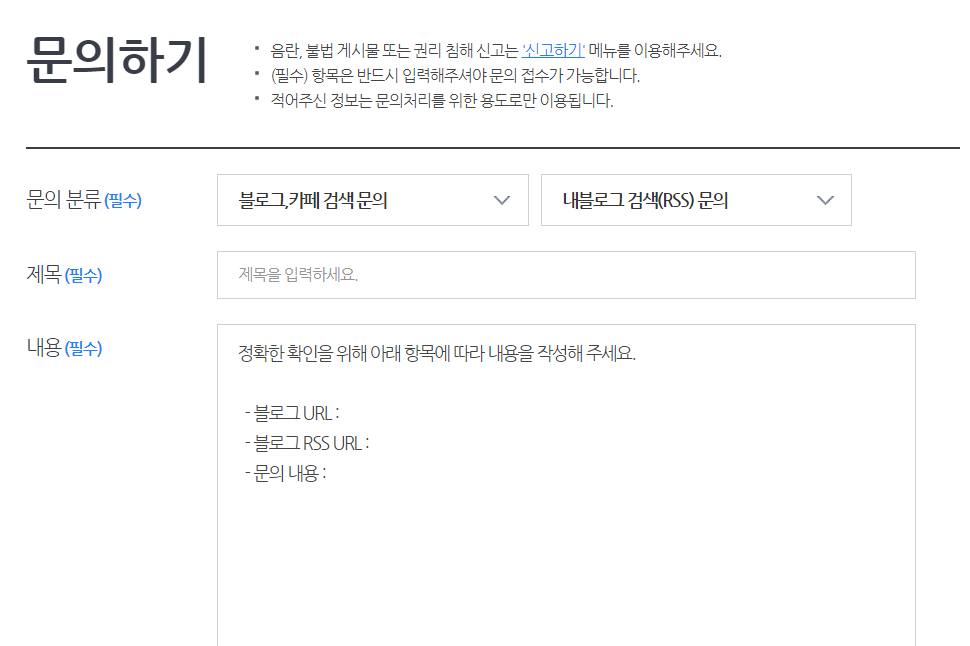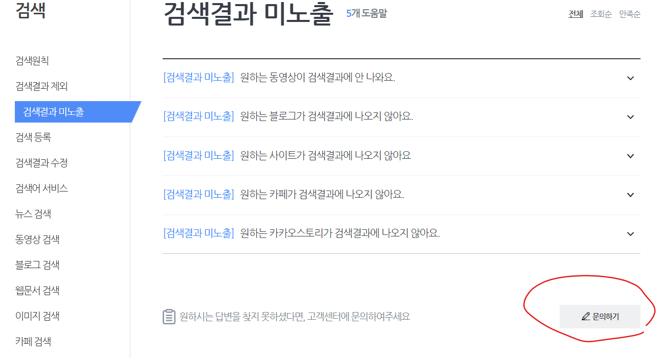 5. 검색결과 미노출에서 '문의하기' 클릭