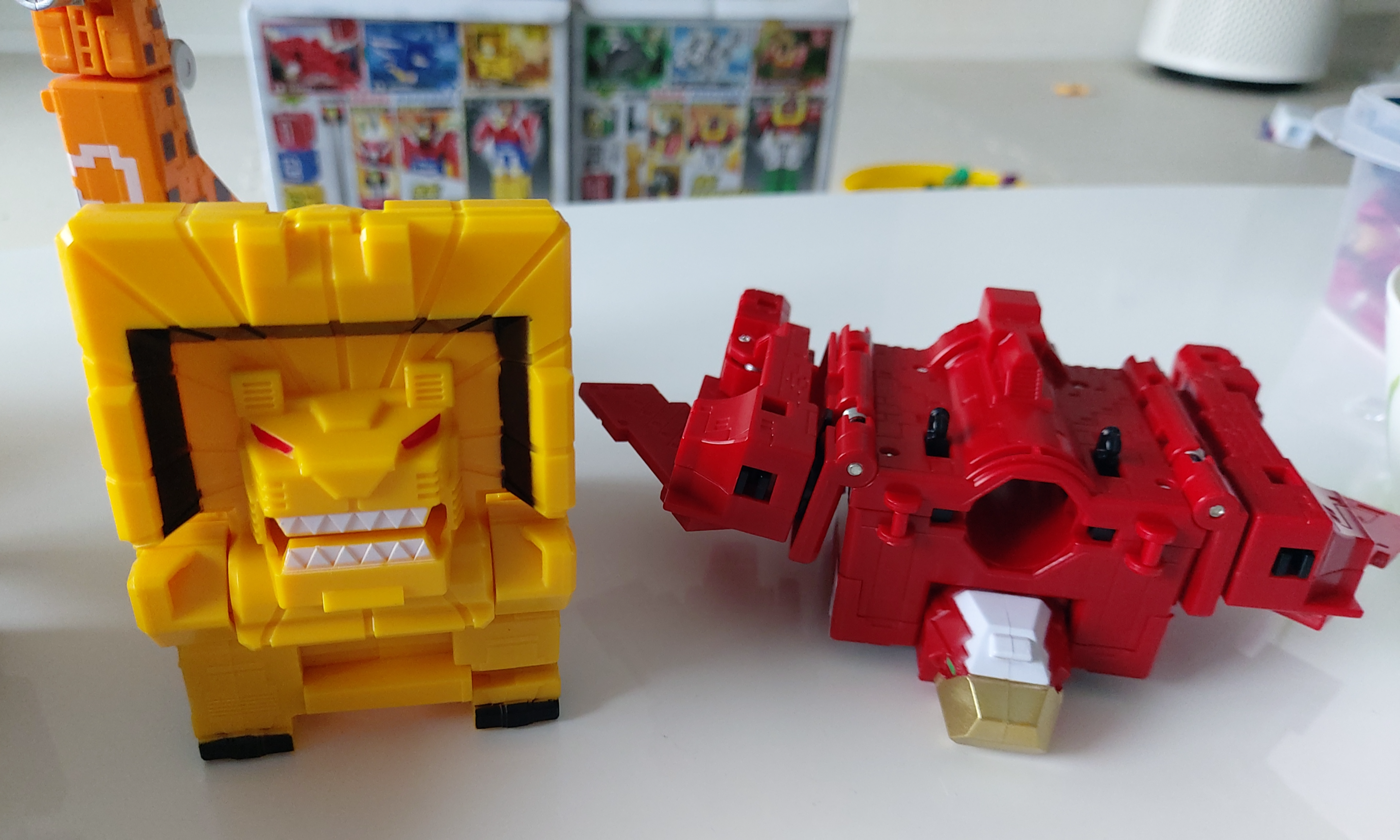 1~3큐브를 조립하고, 4~6번 큐브를 조립하면 아래와같이 2개의 로보트가 변신됩니다.