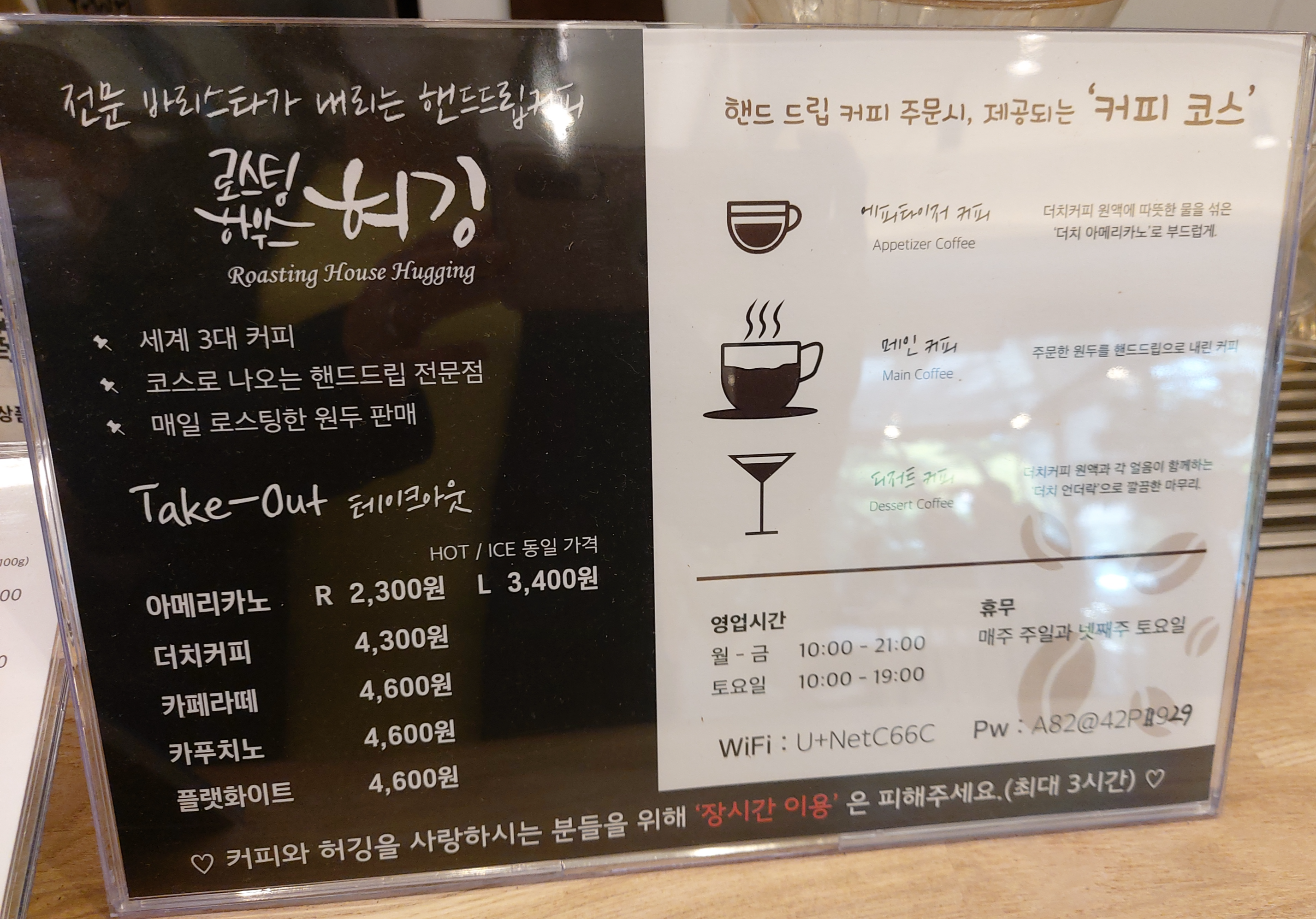 로스팅하우스 허깅은 코스로 나오는 핸드드립 전문점입니다.