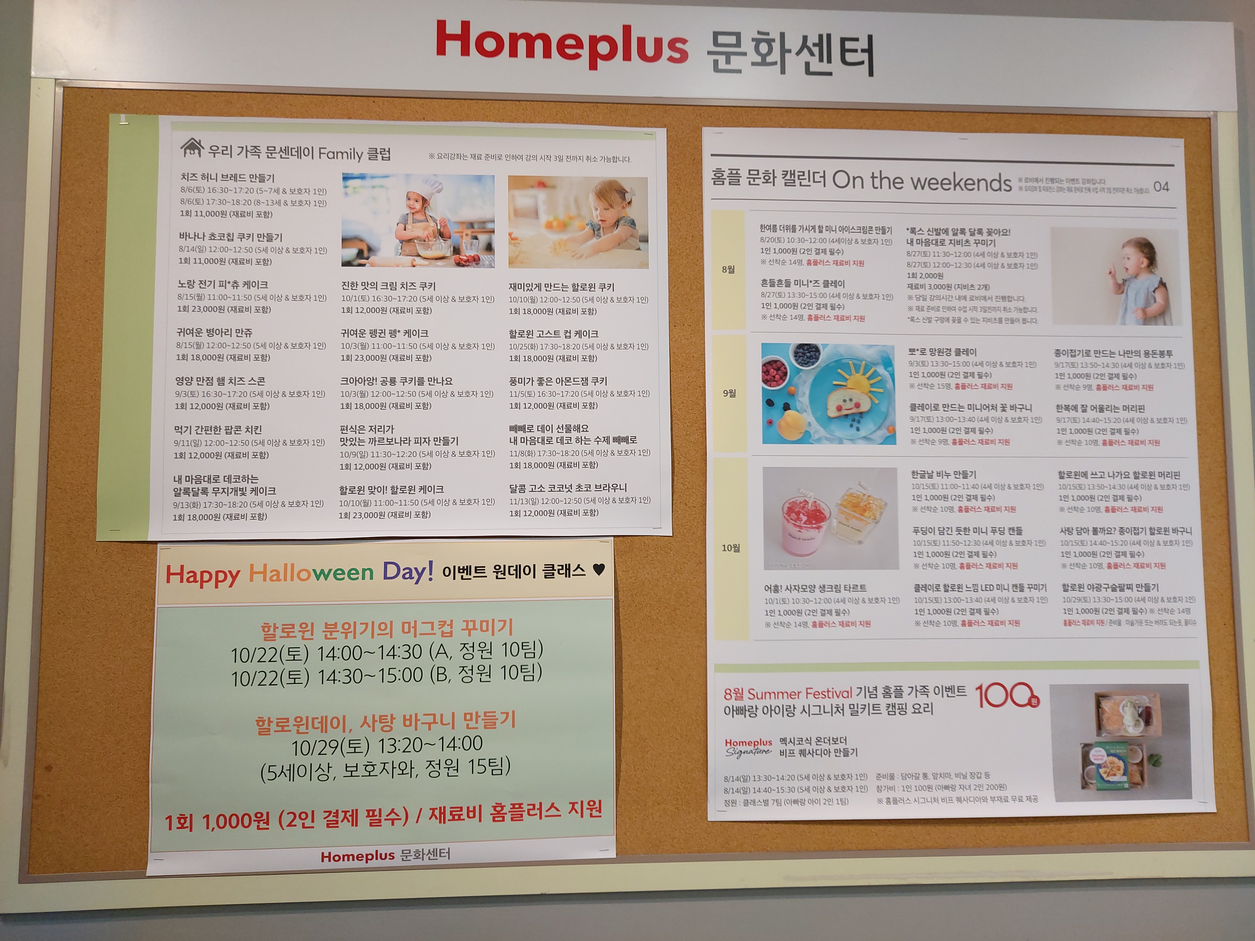 주말동안 아들과 분당 오리역의 홈플러스 문화센터에 다녀왔습니다.