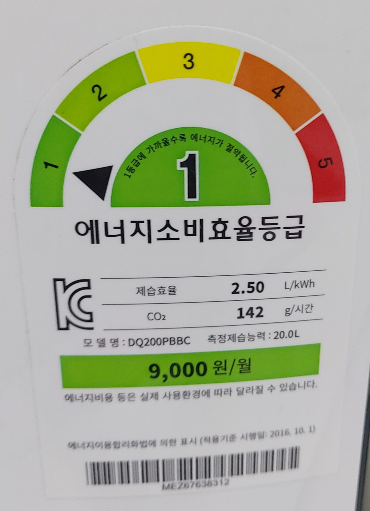 에너지소비효율등급이 1등급입니다.