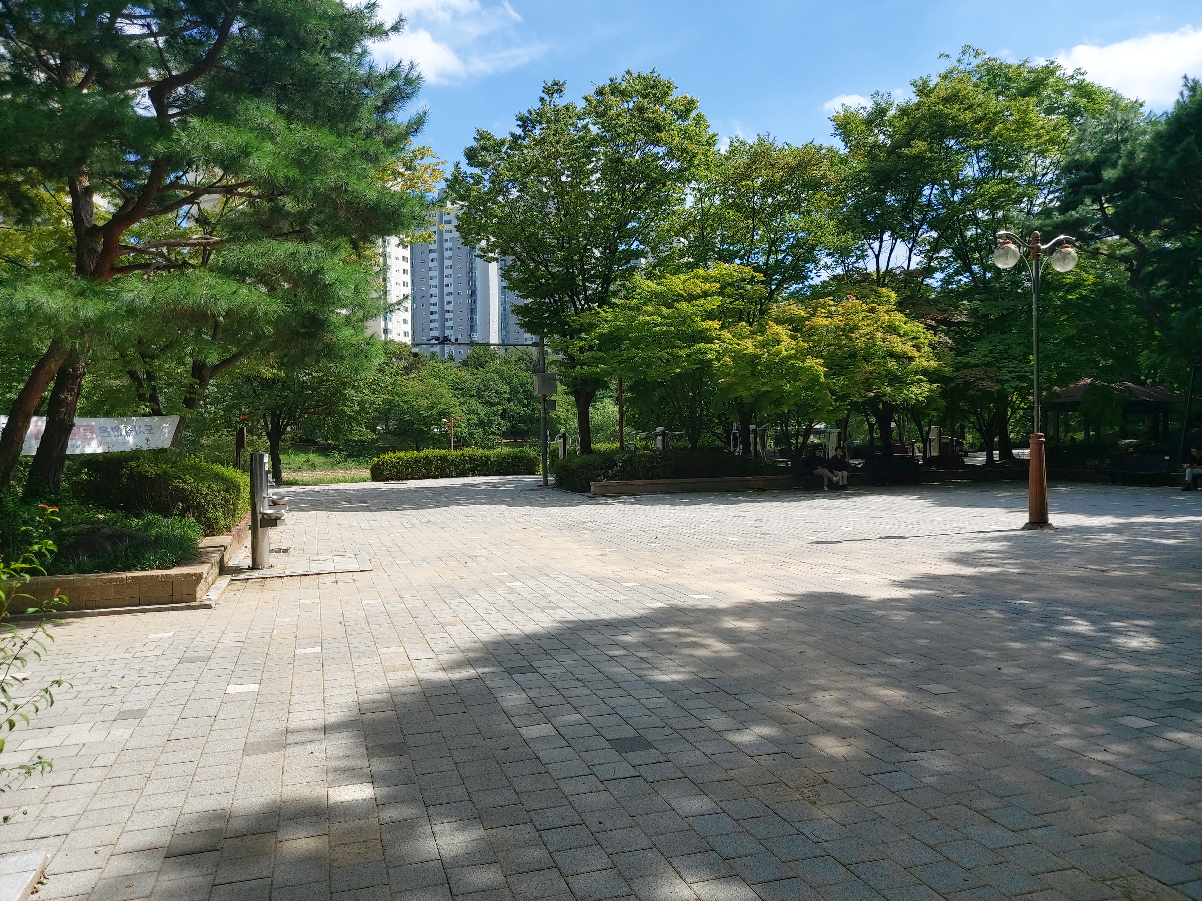오리역 1,2번출구에서 나와서 뒤쪽으로 쭉 걸어오면 오리공원이 나옵니다.