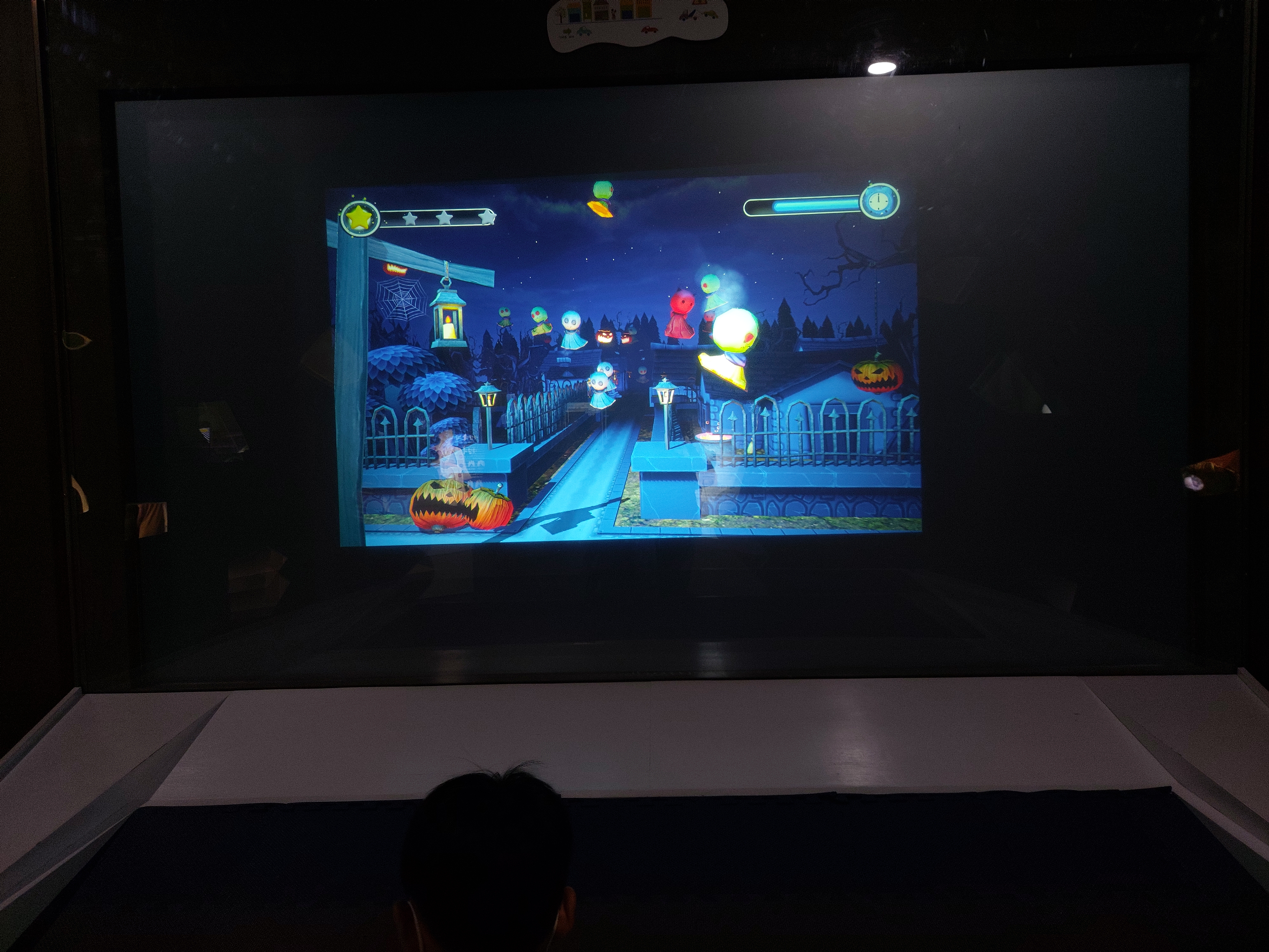 여기 영상관에서는 공으로 요괴같은 것들을 맞추는 게임입니다.