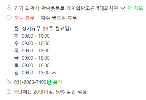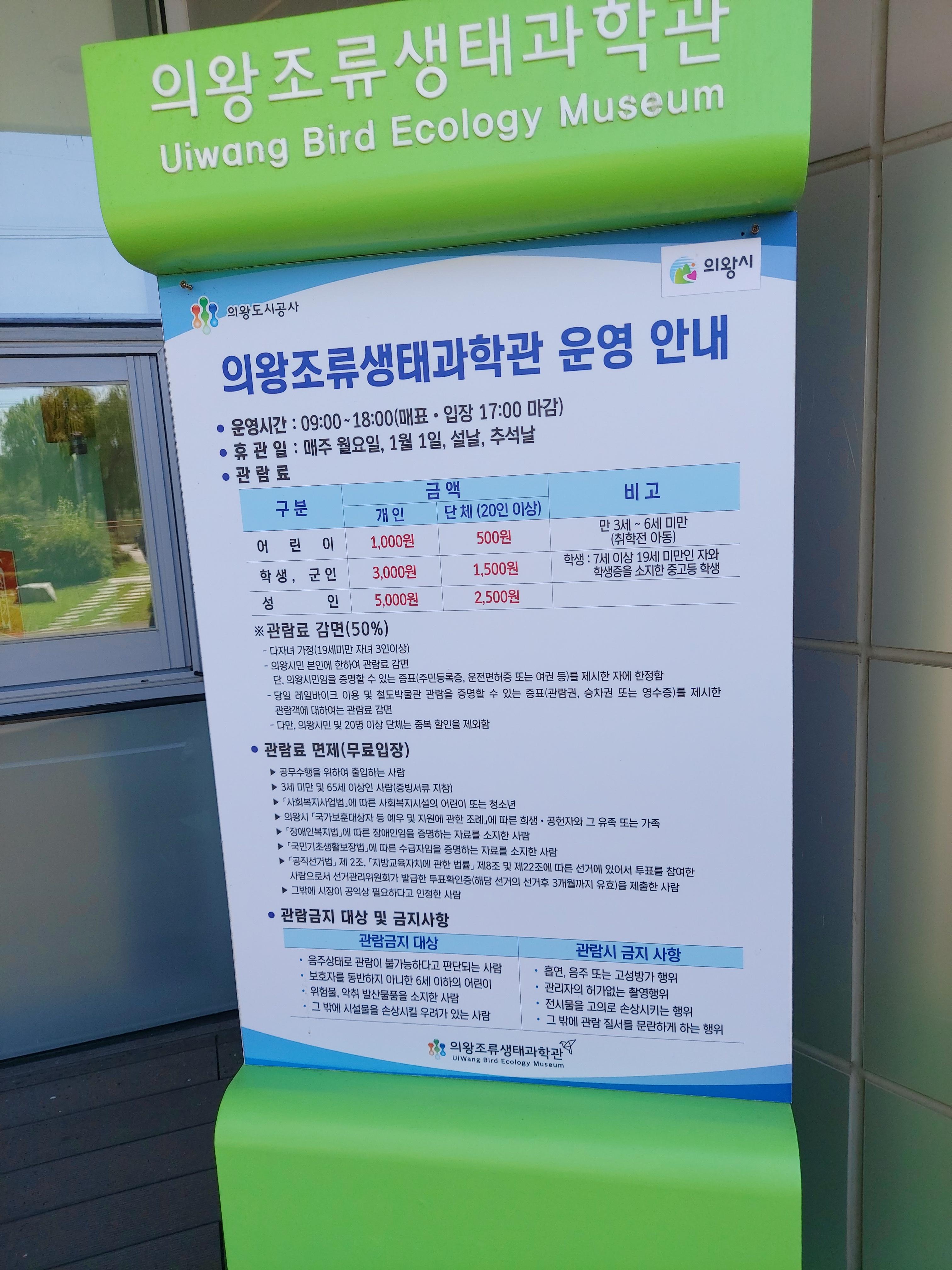 관람료가 저렴하길래 좀 허접하진 않을까 걱정했는데, 의왕조류생태과학관 대만족입니다. 체험거리도 다양하고 가성비가 너무 좋은 것 같습니다. 더구나 레일바이크나 기차박물관 이용하시면 50% 할인도 되니 꼭 들러보세요.