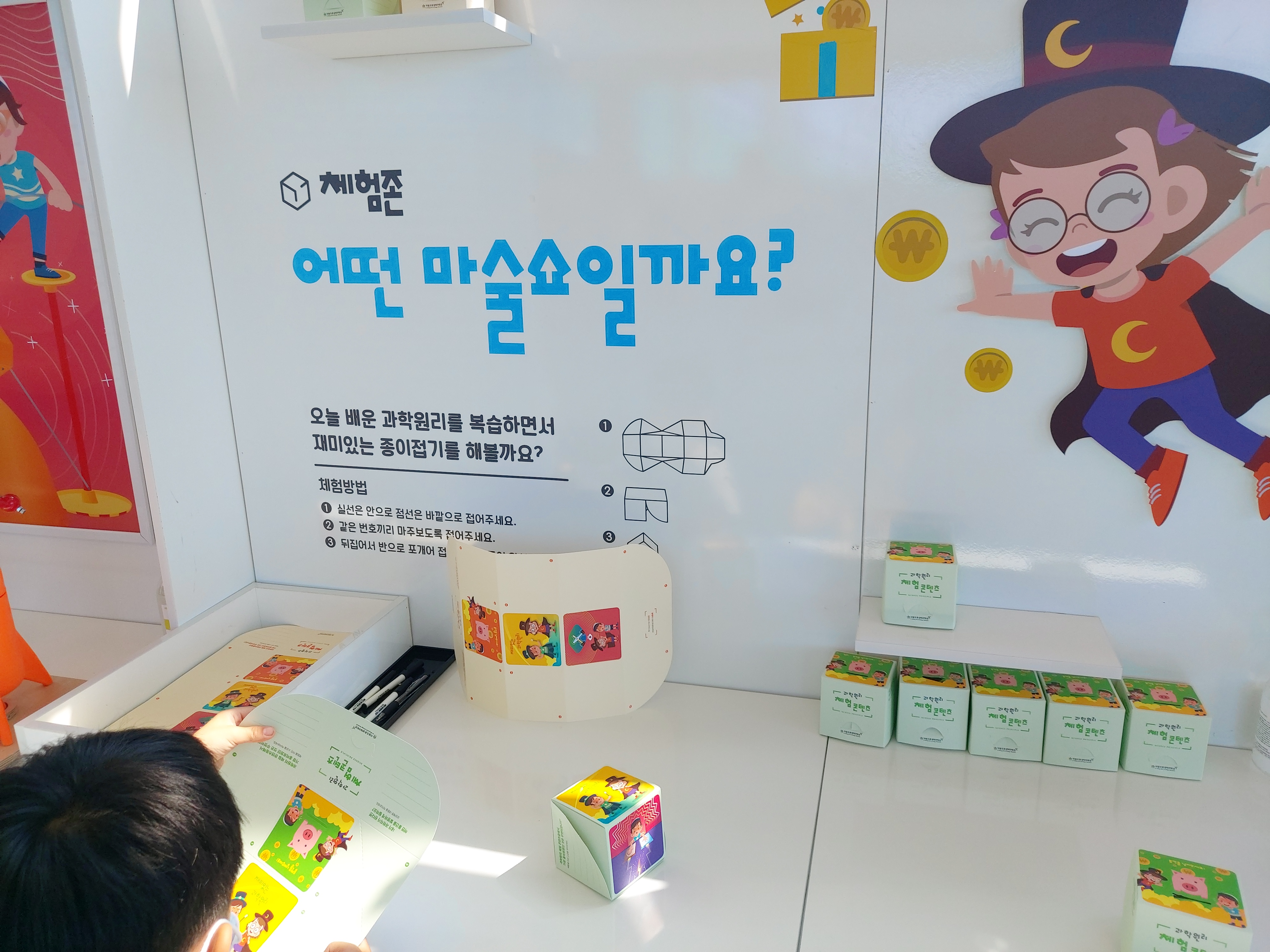한 층 올라와 보니 과학원리를 알아보는 다양한 체험 콘텐츠가 있는 곳입니다.
