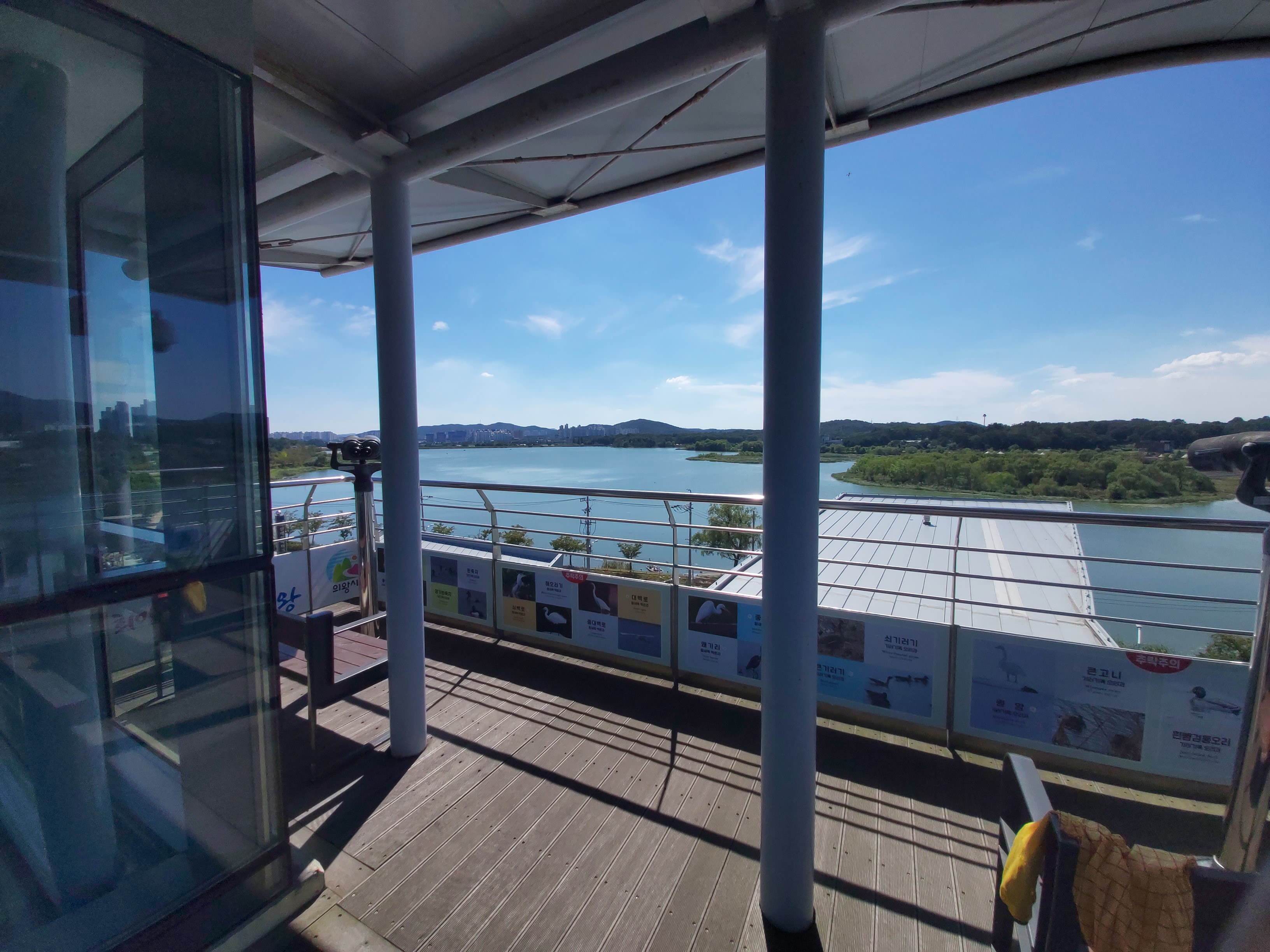 마지막으로 맨 위층 전망대로 오시면 탁 트인 왕송호수 전망이 한 눈에 들어옵니다.