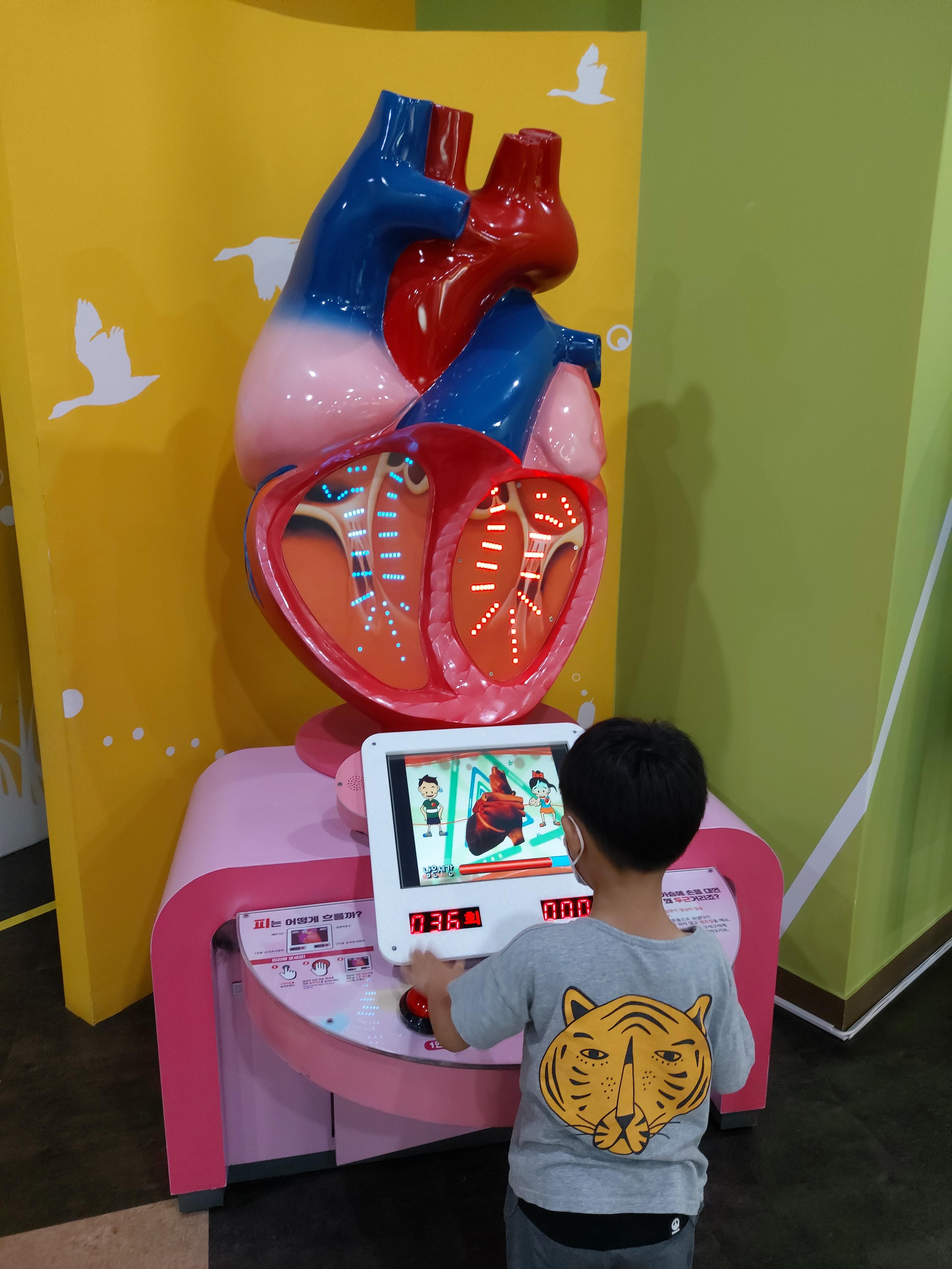 사람의 소화기관과 새의 소화기관이었나. 한 쪽씩 조형물이 있는데, 구멍에 공을 넣어서 어느 소화기관의 공이 빨리 배출되는지 직관할 수 있는 체험이었습니다.