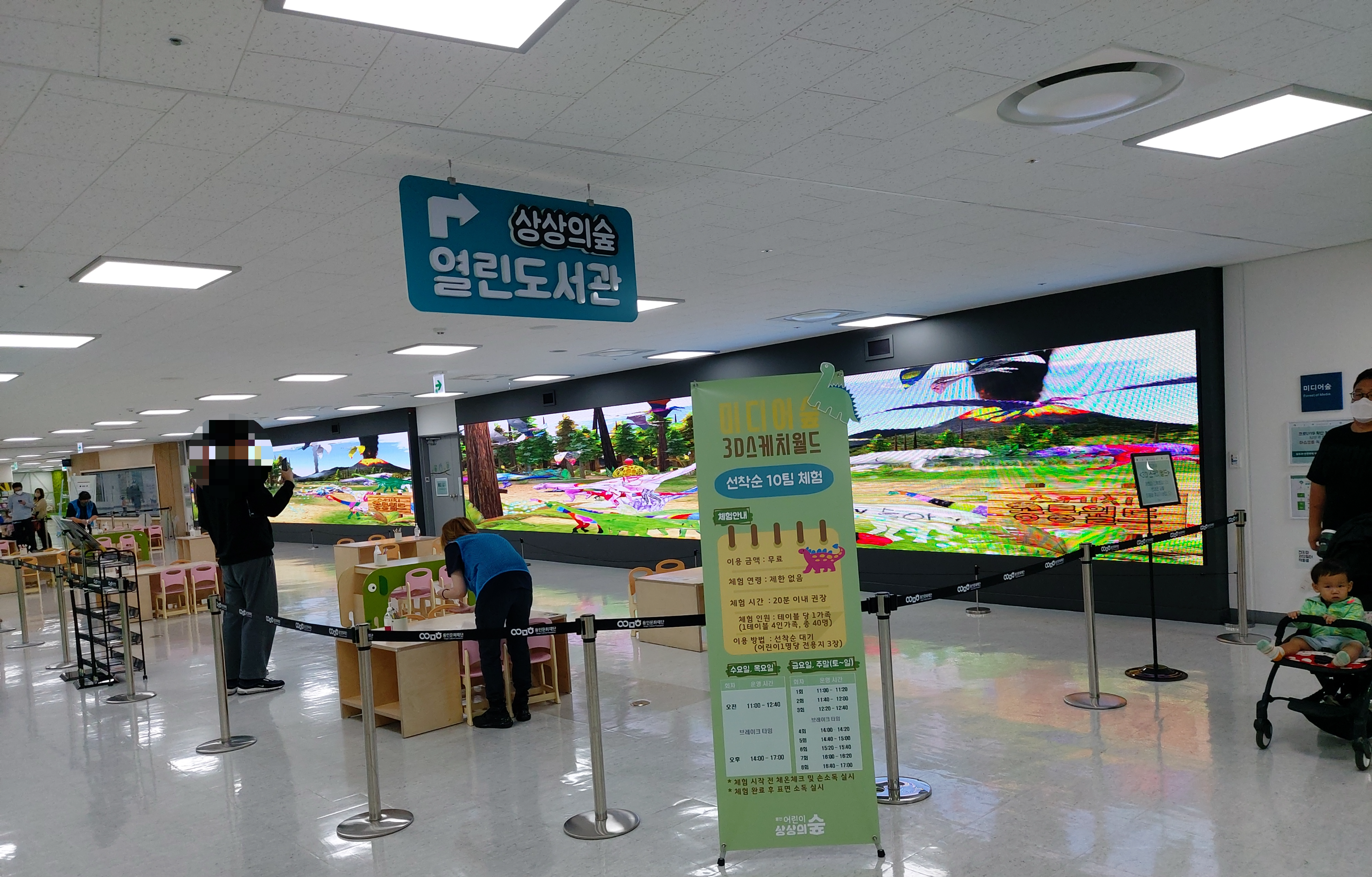 야외 행사에 참여하기 전에 상상의숲 건물 내부로 들어와서 이곳저곳 구경을 했습니다.