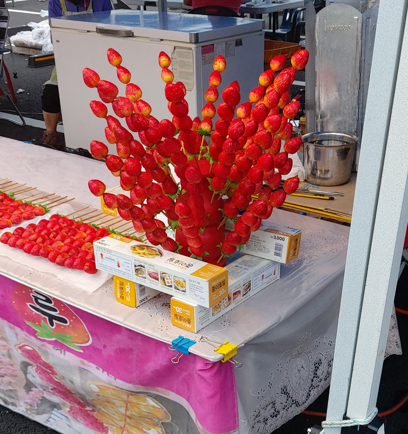 탕후루 (과일꼬치)도 있더라고요. 아이들이 하나씩 손에 들어 빼먹는 모습이 귀엽더라고요.