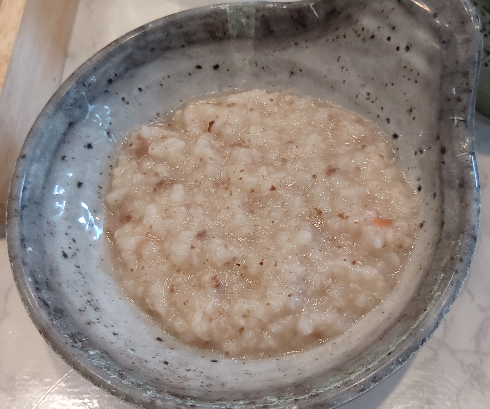 기본으로 죽과 우동이 나오는 것 같습니다.