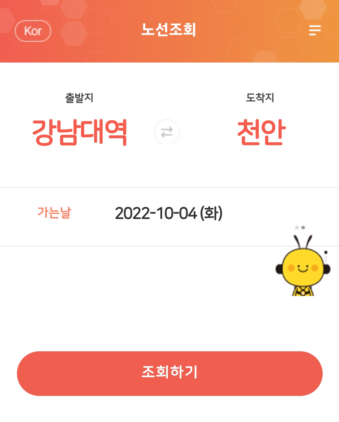 1.출발지와 도착지를 입력하신 후, '조회하기'를 클릭합니다.