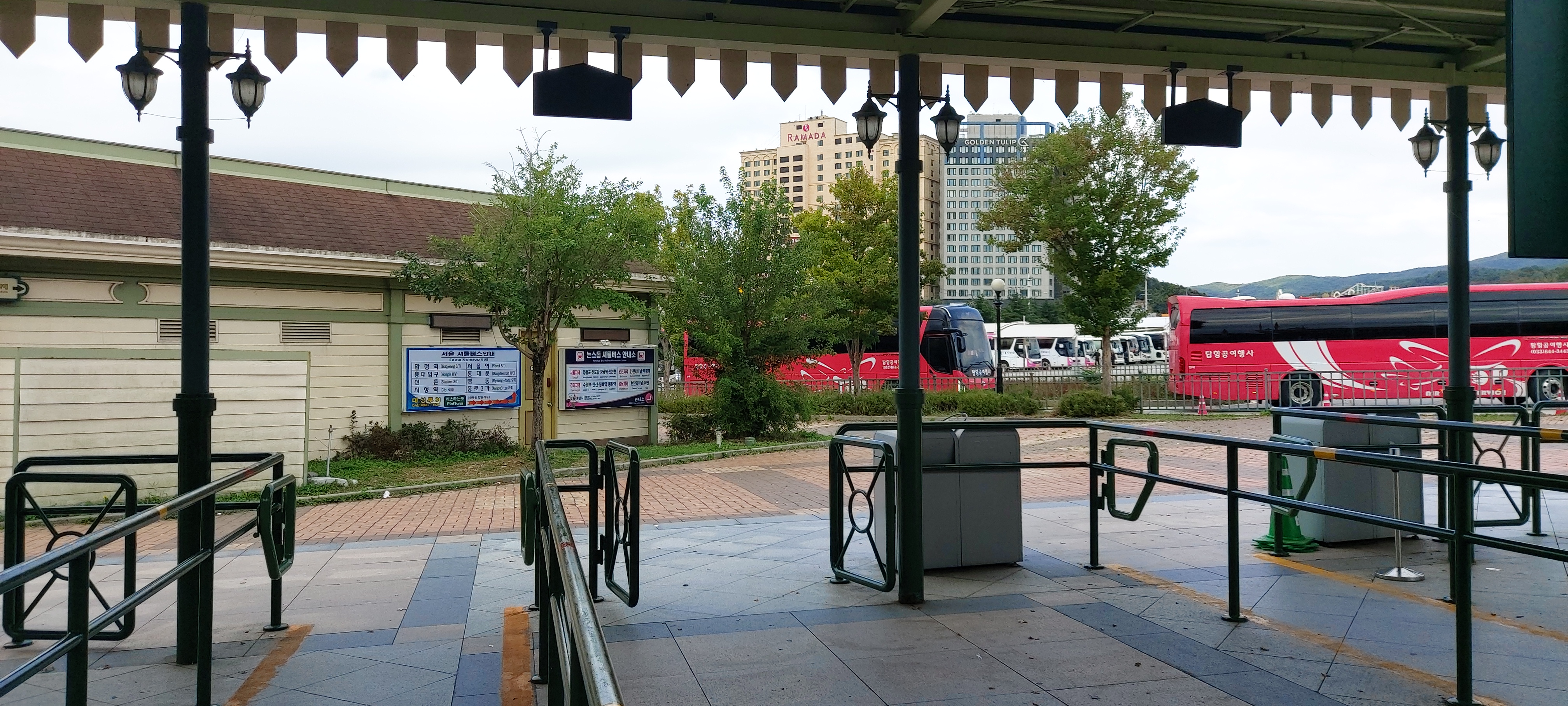 계단을 내려오면 에버랜드로 향하는 무료 셔틀버스 정류장이 보입니다.