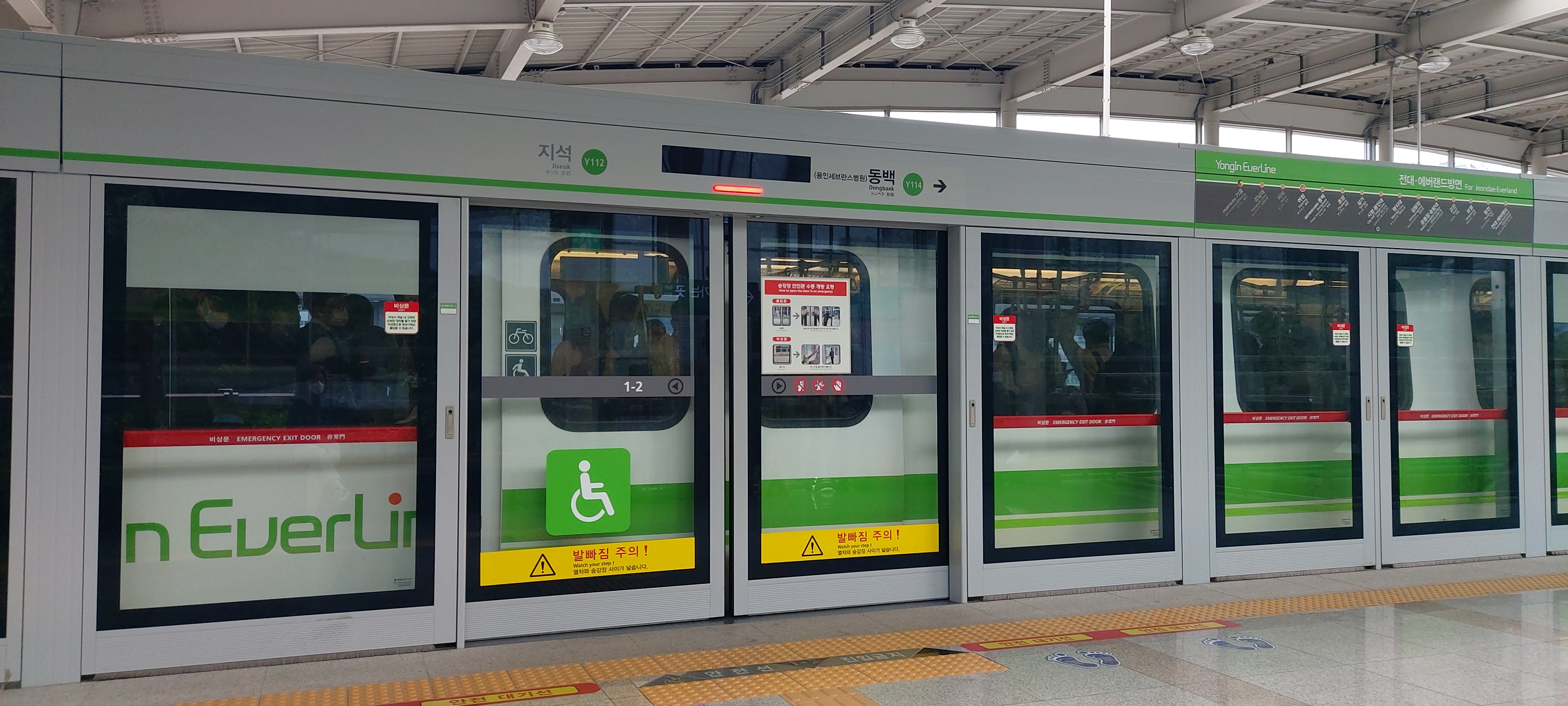 에버라인 열차는 출입문이 2개로 아담합니다.