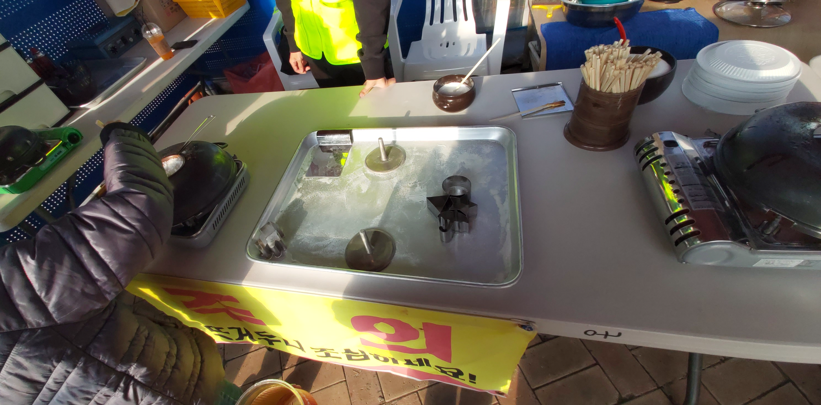 아쉬움을 뒤로하고 어린이보트 맞은편에 달고나 체험을 해보았습니다.
