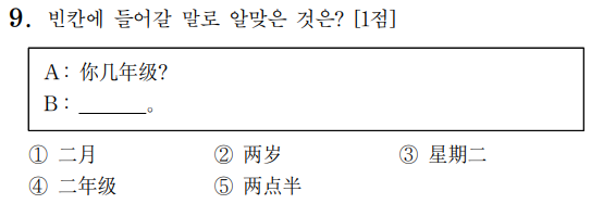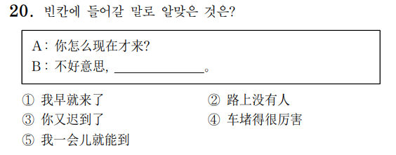 [해설] '고마워'에 대한 대답을 찾는 문제네요. 와 역대급으로 쉬운 문제입니다. 확실히 수능 중국어 난이도가 많이 낮아졌네요.