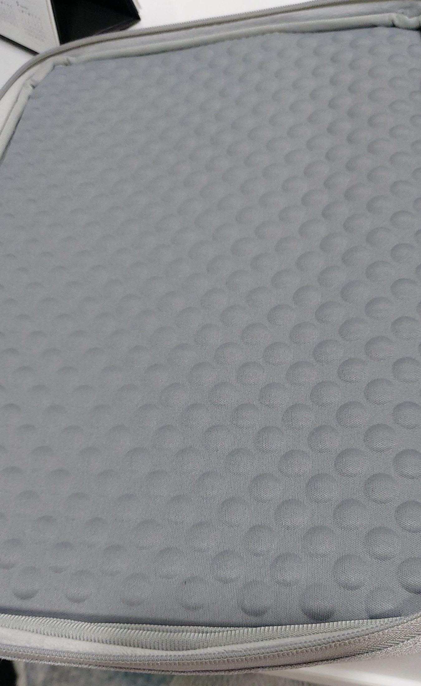 한쪽 면은 스크래치 방지용 부드러운 융털이 있고, 다른 한 쪽은 올록볼록 엠보싱 원단으로 노트북을 충격에서 지켜줍니다.