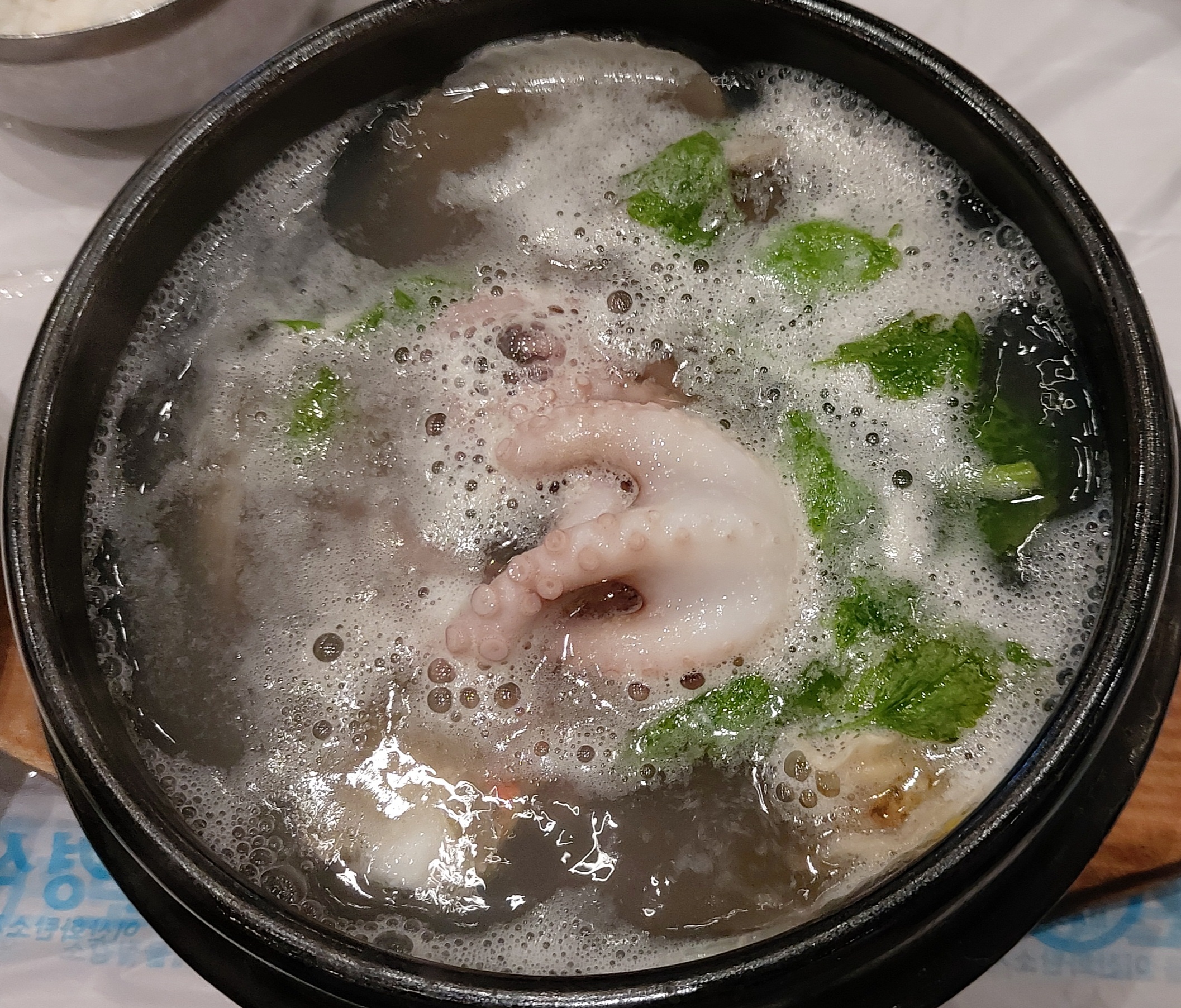 해물뚝배기였던것 같아요. 맑은 탕으로 시켰는데, 국물도 시원하고 너무 맛있었어요.