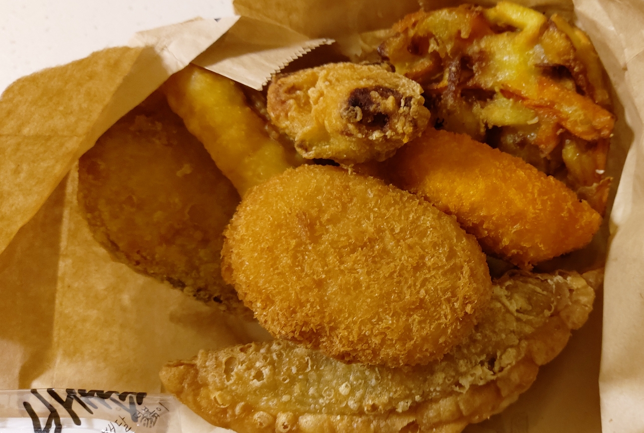 국물떡볶이에 튀김A세트, 참치마요밥을 시켰어요. 총2만원.
