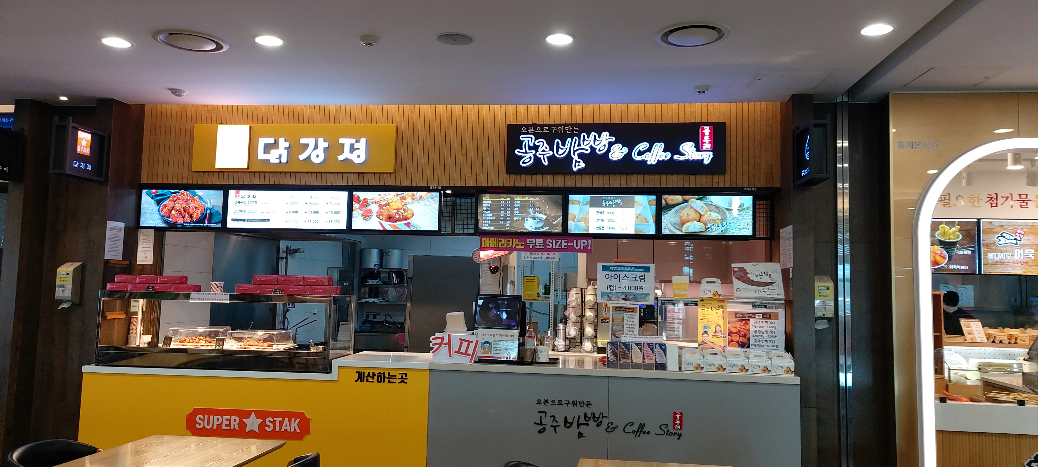간단한 간식거리부터 푸드코트도 다양했어요.