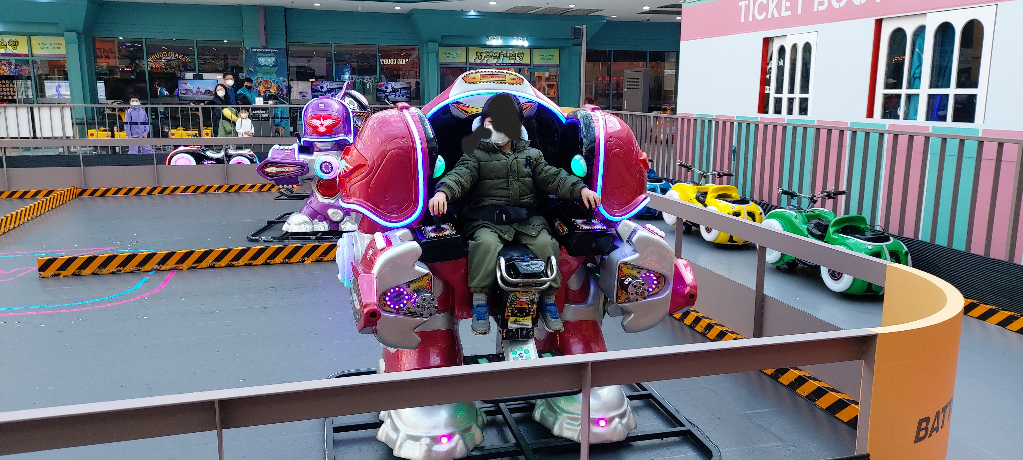 범퍼카입니다. 저희 아이는 130이 아직 안되서 아빠와 동반 탑승했습니다.