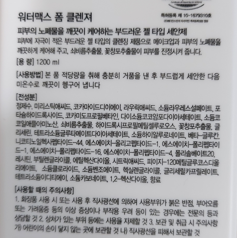 피부과 쌤이 약산성 폼클렌져 사면 된다고 하면서 이 제품을 추천해 주던데. 알고보니 요건 약산성까지는 아니고 중간 정도라고하더라고요. 어쨌든 1200ml 엄청 대용량으로 구입했는데. 몇 년은 쓸 것같네요 ㅎㅎ