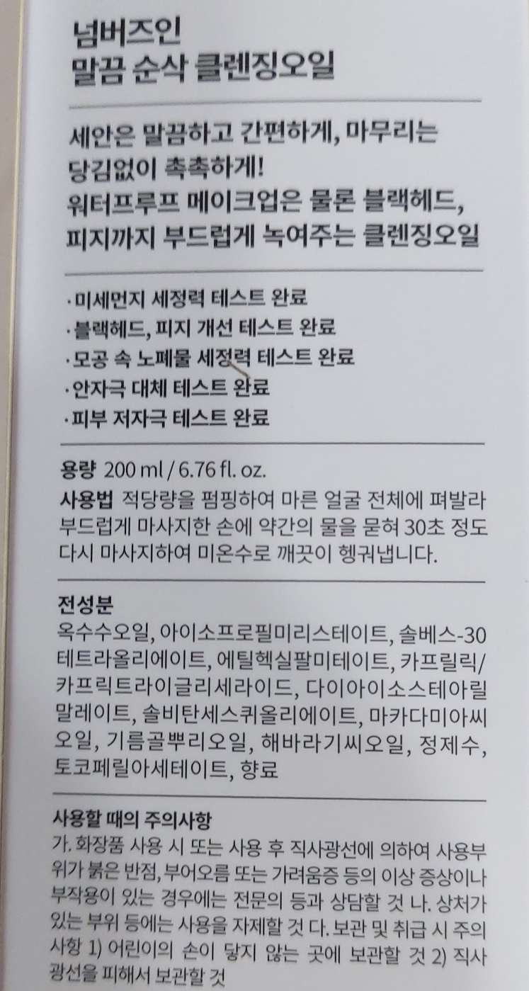 <넘버즈인 1번 말끔 순삭 클렌징오일>