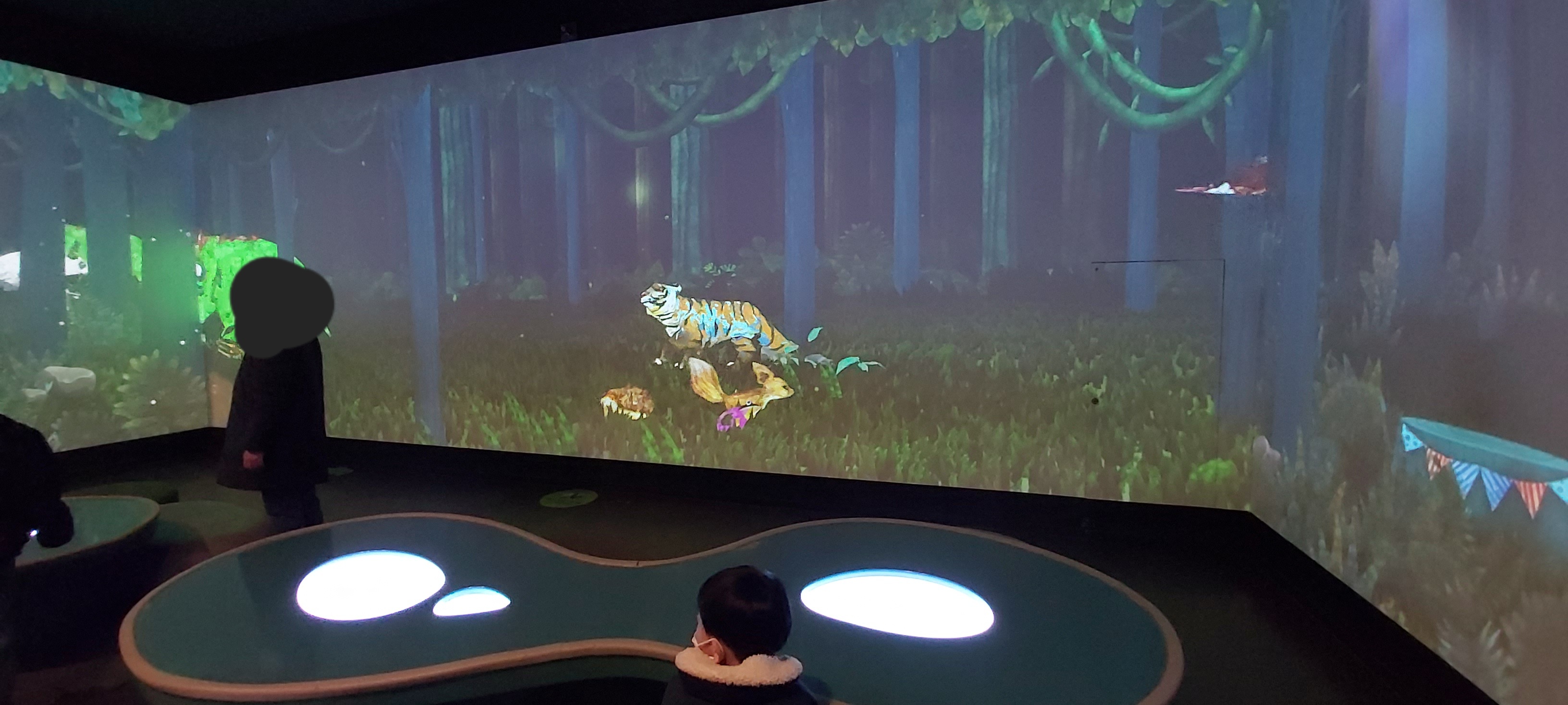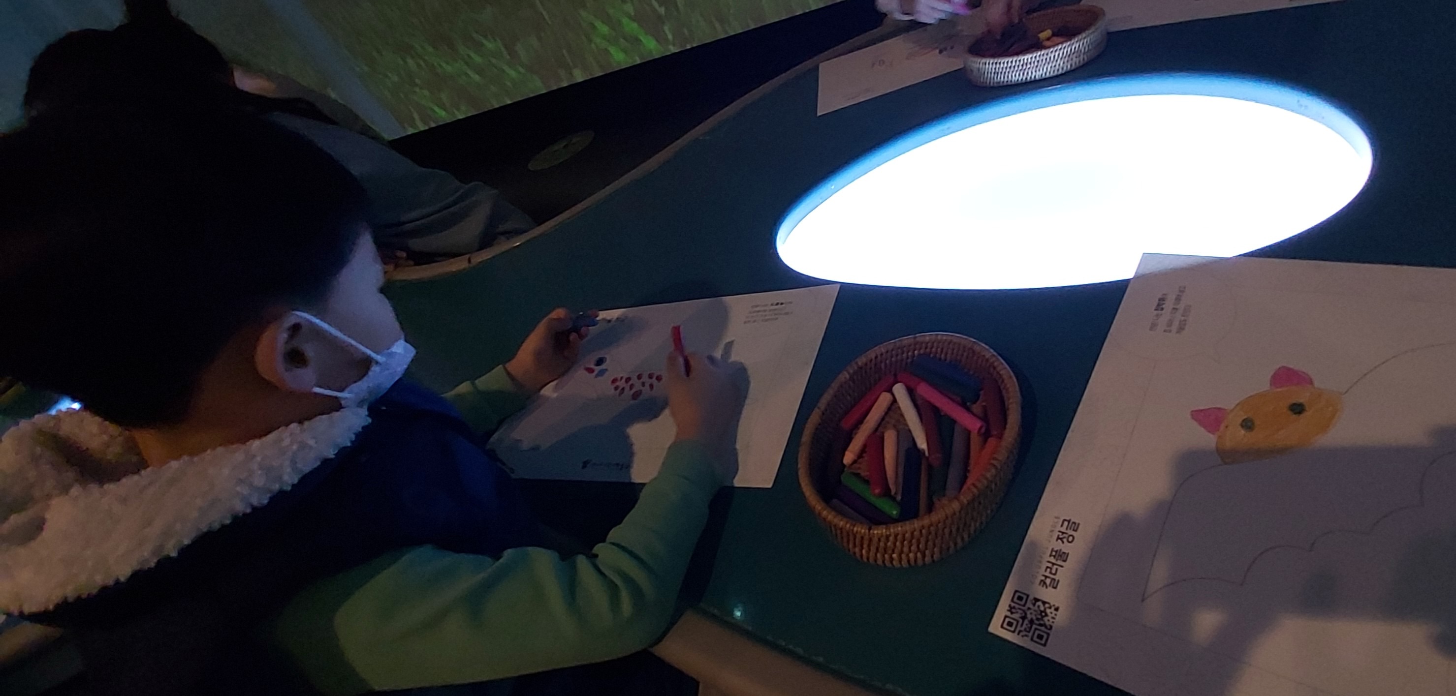 그런데 여긴 특별한 것이. 선생님이 멸종 위기 동물들에 대해 설명해 주시고, 해당 동물을 그려서 화면에 띄운 후 쓰다 듬으면 동물이 뒤집기도 하고. 마지막에 미션으로 멸종위기 동물들을 헤치는 여러 요인들을 찾아 화면에서 터치하는 게임도 있습니다.