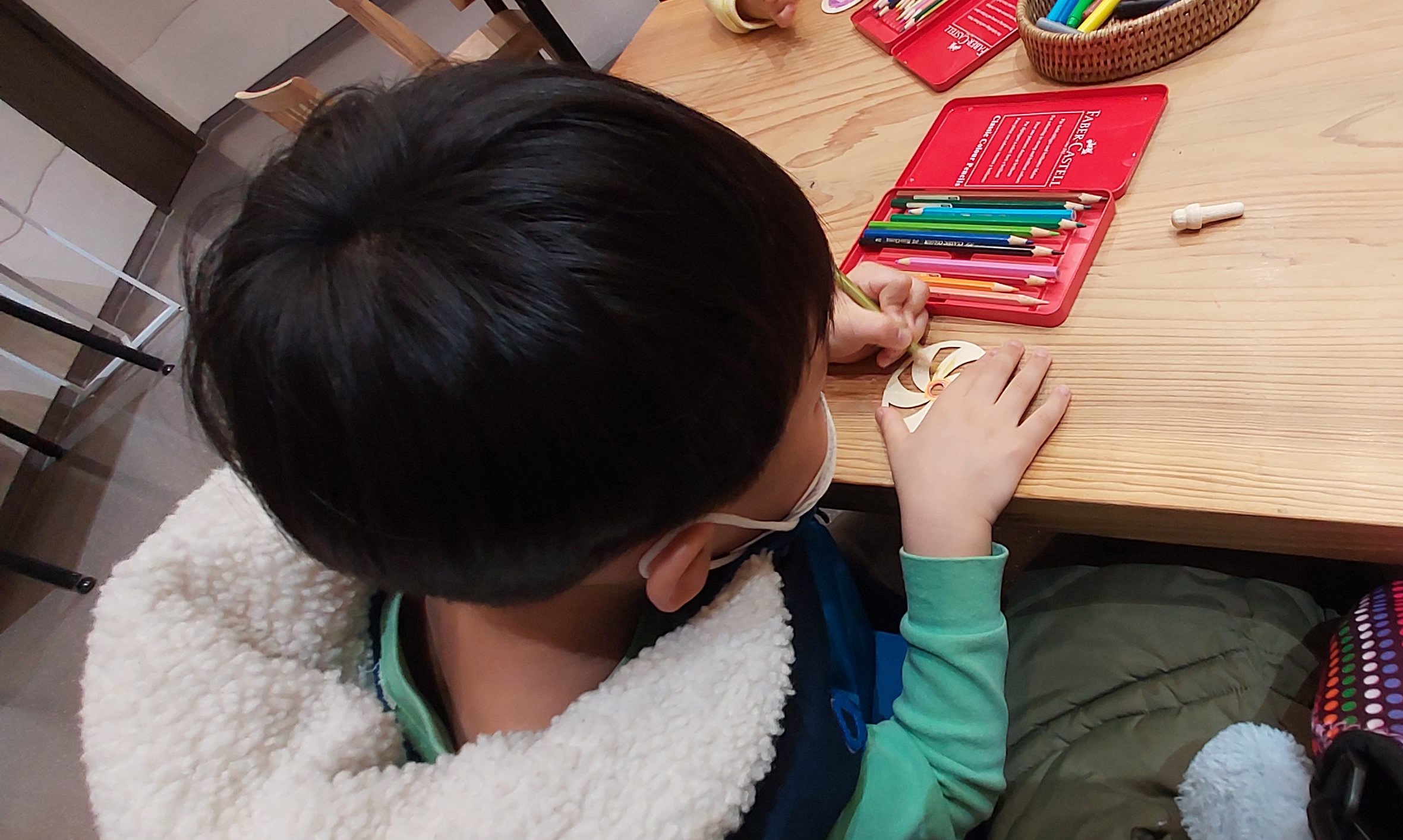 테이블에 앉아서 자유롭게 나만의 팽이를 꾸미시면 됩니다.