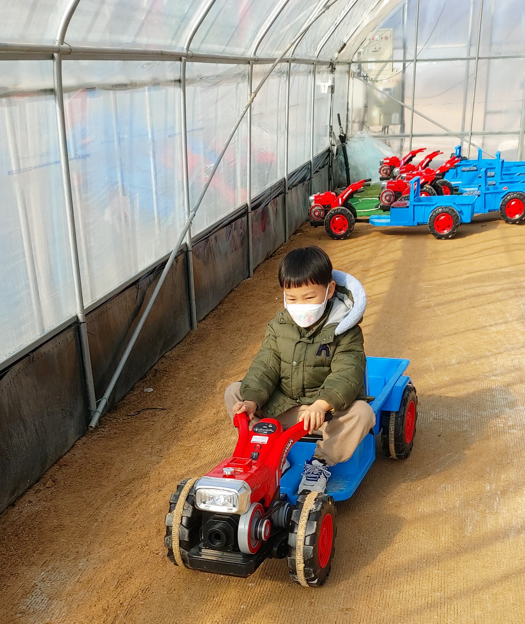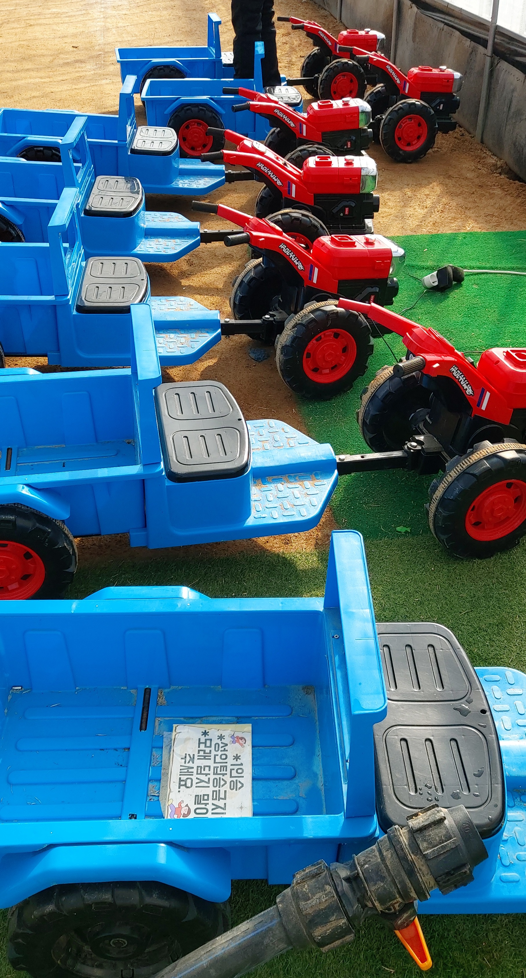 딸기 따는 비닐하우스 바로 옆에 이렇게 트렉터 운전할 수 있는 체험 공간도 있습니다.