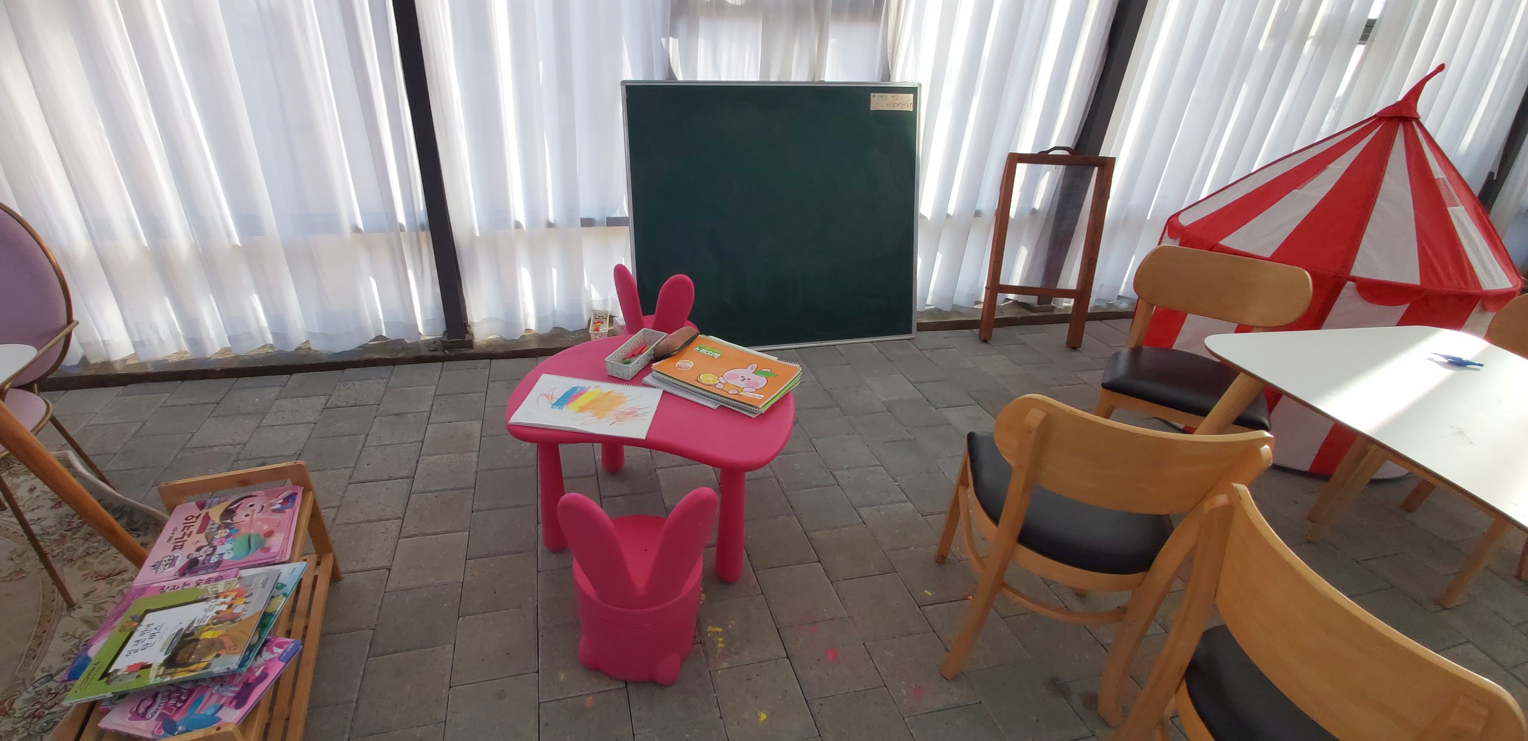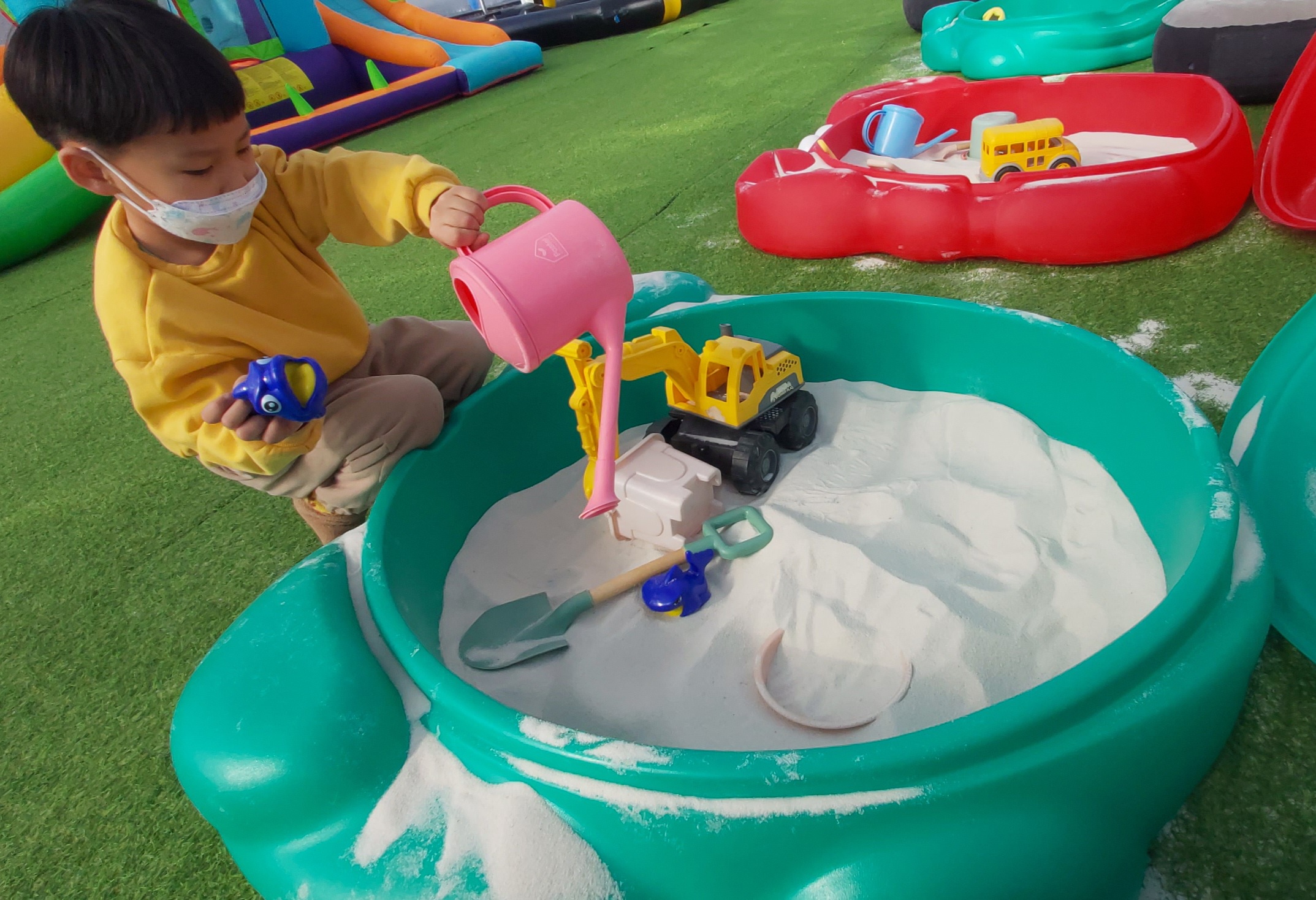 텐트마다 테이블과 모래놀이가 마련되어 있네요. 날씨 좋을 때 오면 더 좋을 것같아요.
