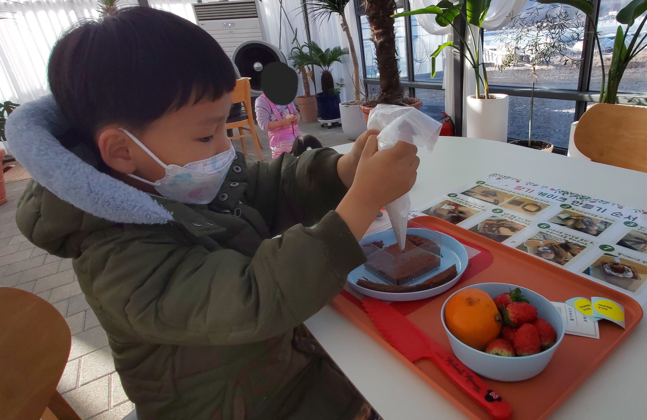 좀 놀다보니 딸기 케이크 만들기 체험 시간이 되었습니다.