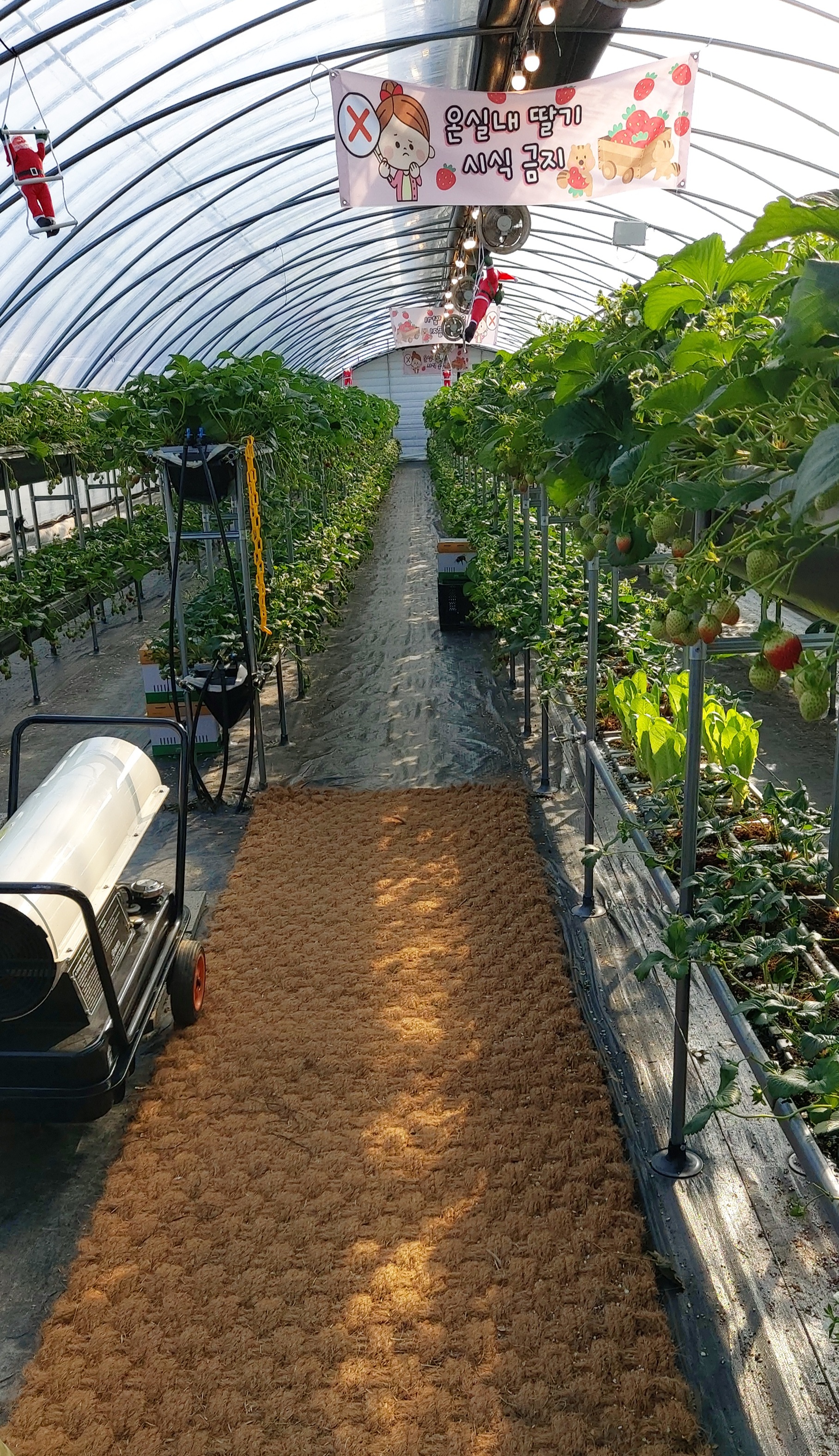 비닐하우스에서 딸기 취식은 안되지만 들고와서 메인 홀에서 딸기를 씻은 후 거기서 드시면 됩니다.